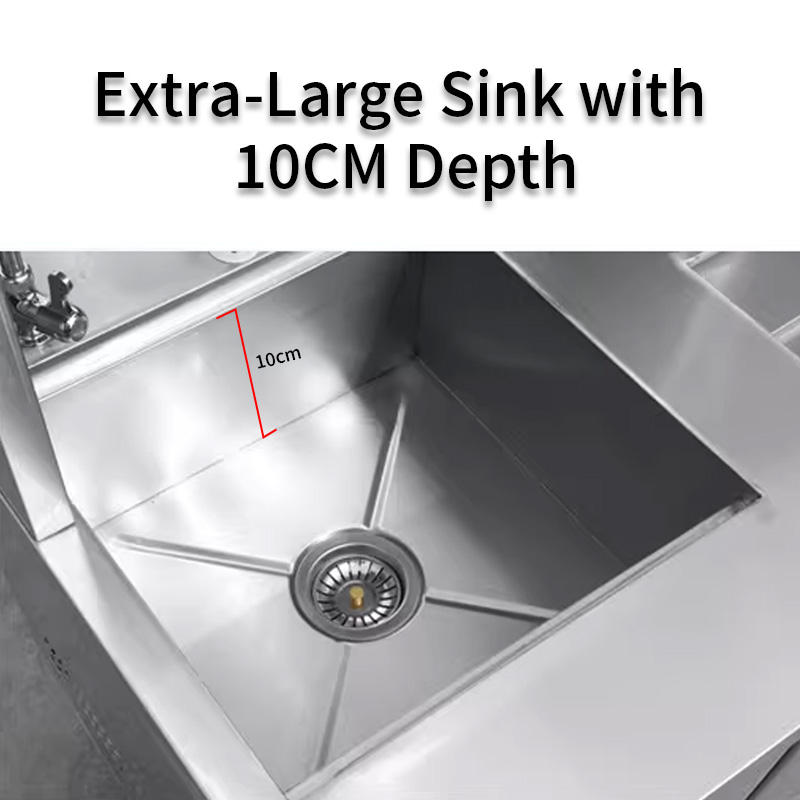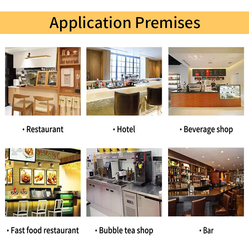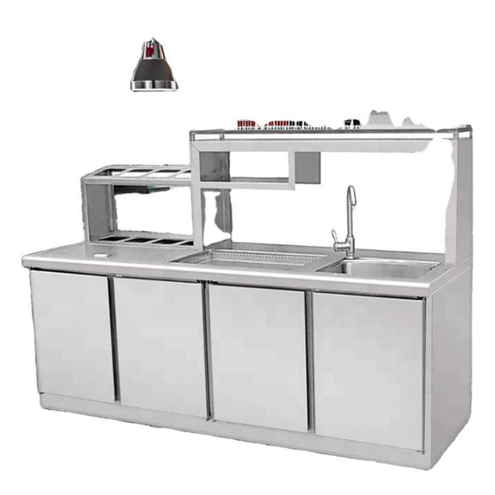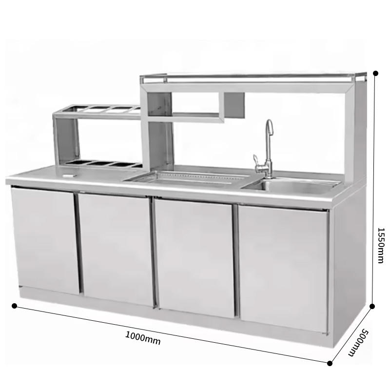 Stazione di lavoro commerciale in acciaio inox per ristoranti, caffetterie, bar di bubble tea, banconi per tè al latte, attrezzature per cucine e armadietti.