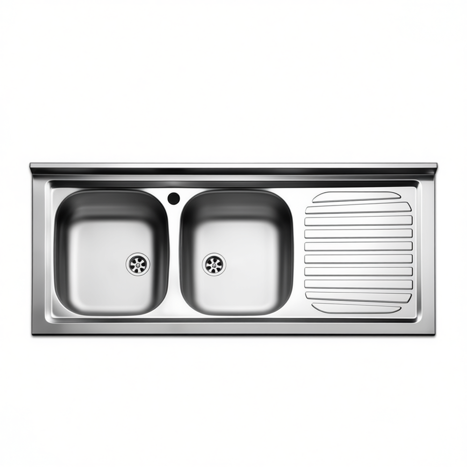 Lavello da Cucina in Acciaio Inox a 2 Vasche, 120 Cm, Scarico a Destra, Larghezza 53,5 Cm, Altezza 23,5 Cm