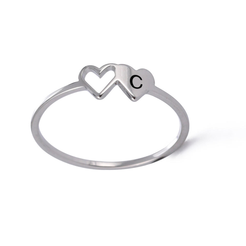 Coppia di anelli in acciaio inossidabile, Design a doppio cuore con incisione di 26 lettere, placcato gioielli per amanti per regali Festival