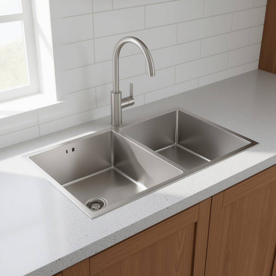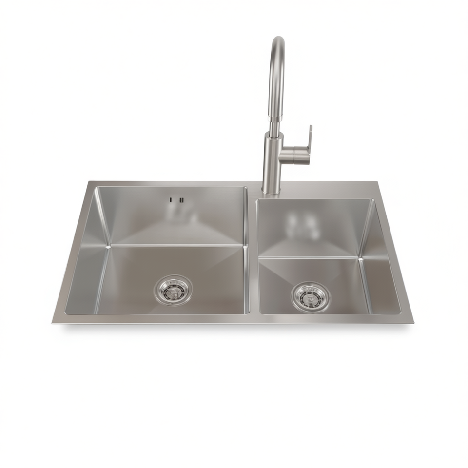 Lavello da Cucina a Doppia Vasca in Acciaio Inossidabile 32x19x10 Pollici Finitura Satinata Rettangolare Fatto a Mano Facile da Pulire
