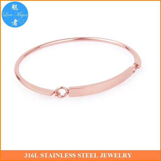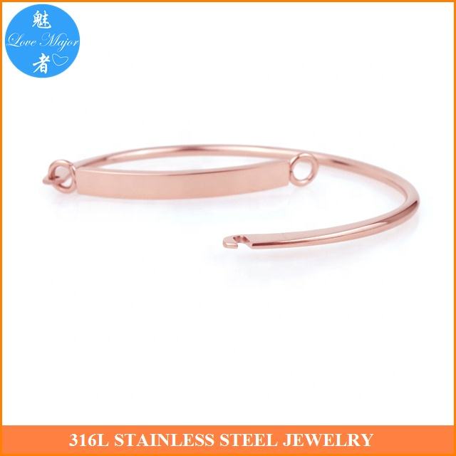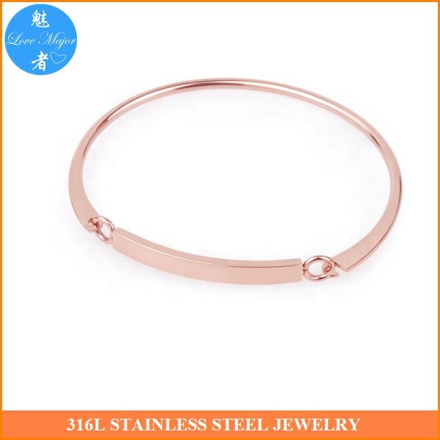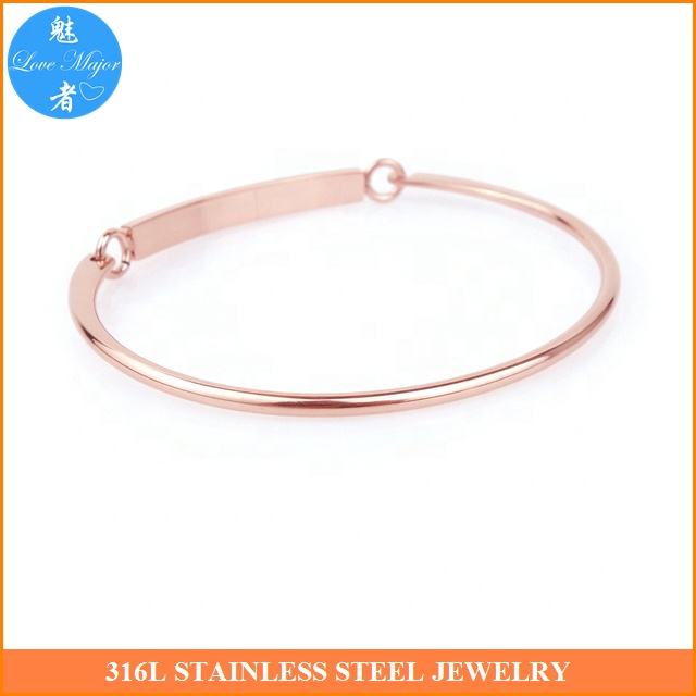 Bracciale Rigido in Acciaio Inossidabile Inciso con Placcatura in Oro Rosa, Gioiello di Moda per Donne