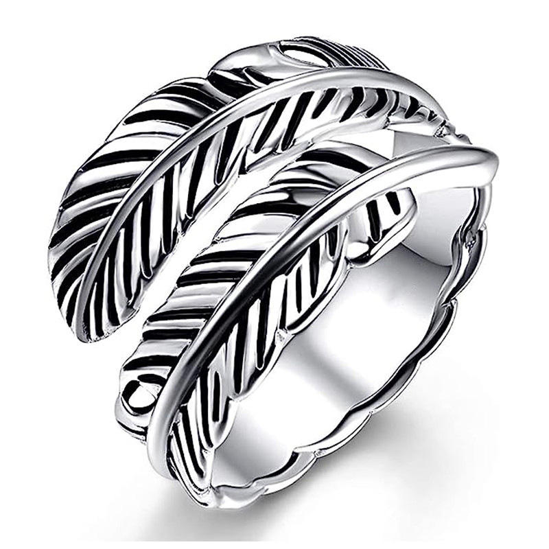 Anello con piuma in acciaio inossidabile, regalo unisex in stile bohémien, gioielli di moda T0362