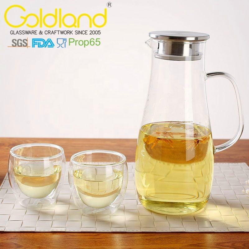 Stainless Steel Flat Lid Glass Pitcher Iced Tea Pitcher Water Jug Beverage Carafe 1.5L