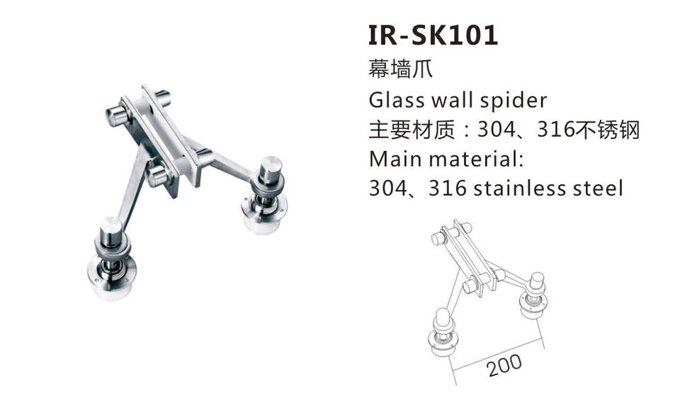 Raccordi a ragno per parete continua in acciaio inossidabile con 2 bracci su entrambi i Sider per una distanza di 200mm