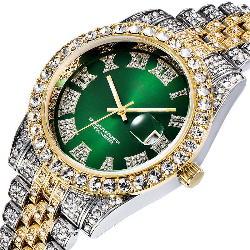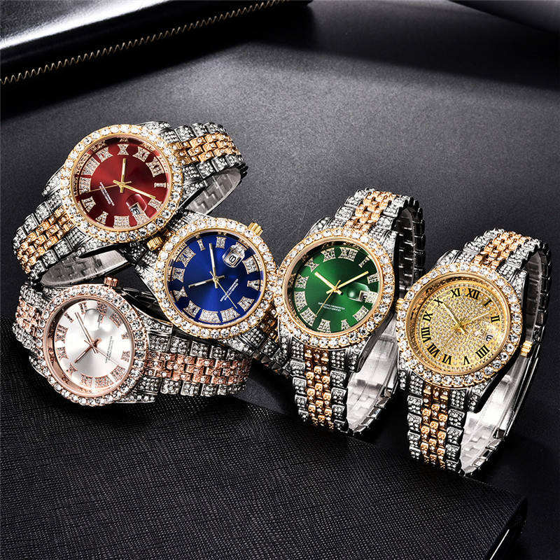 Orologio da uomo con diamanti a mano in oro in acciaio inossidabile orologio da polso da donna di lusso da uomo al quarzo