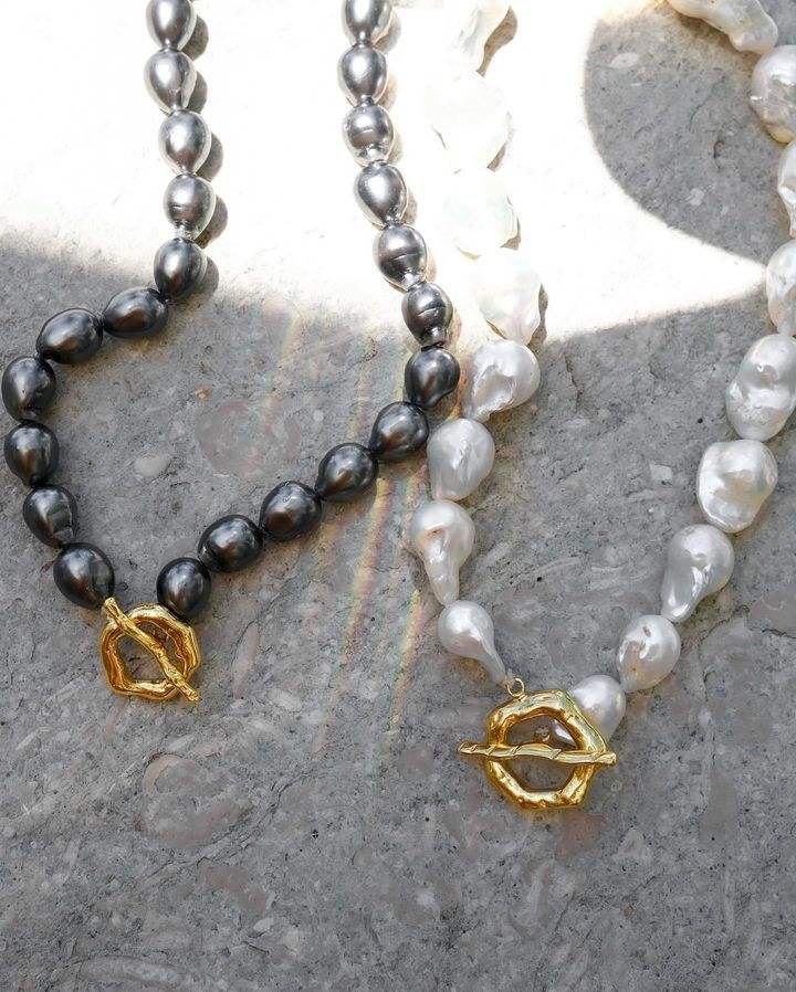 Stainless Steel Gold OT Clasp Vintage Freshwater Real Pearl Jewelry Large Baroque Pearl Choker Black Pearl Necklace for Women