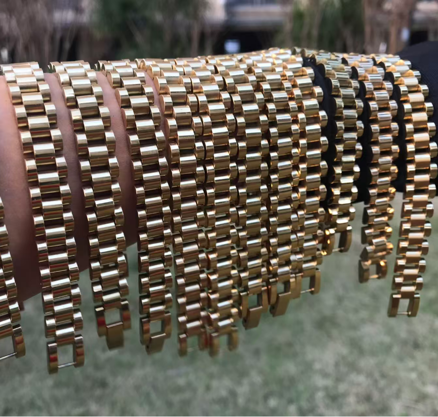 Bracciale a Catena Cubana in Acciaio Inox Placcato Oro, Design Classico Stile Nugget Rollie per Uomo e Donna