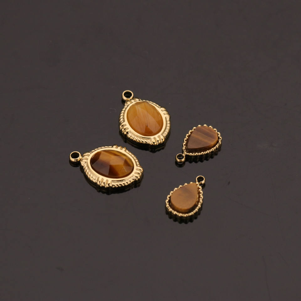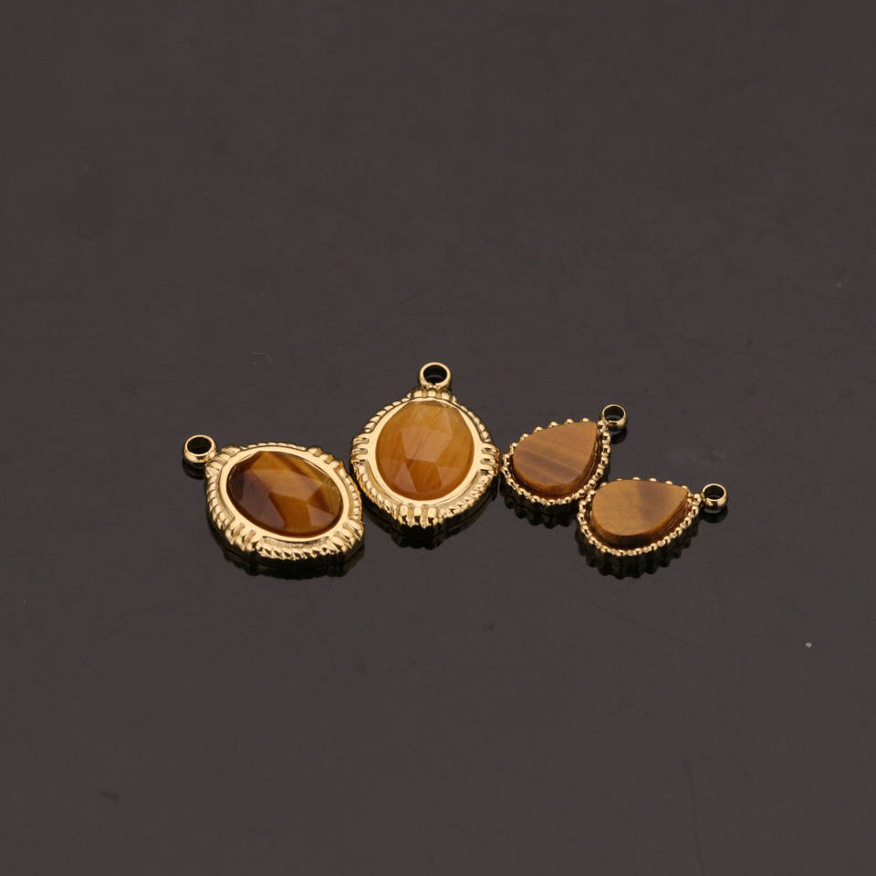 Ciondoli a Goccia in Occhio di Tigre Placcati Oro in Acciaio Inossidabile per Creazione di Gioielli Fai-da-Te alla Moda