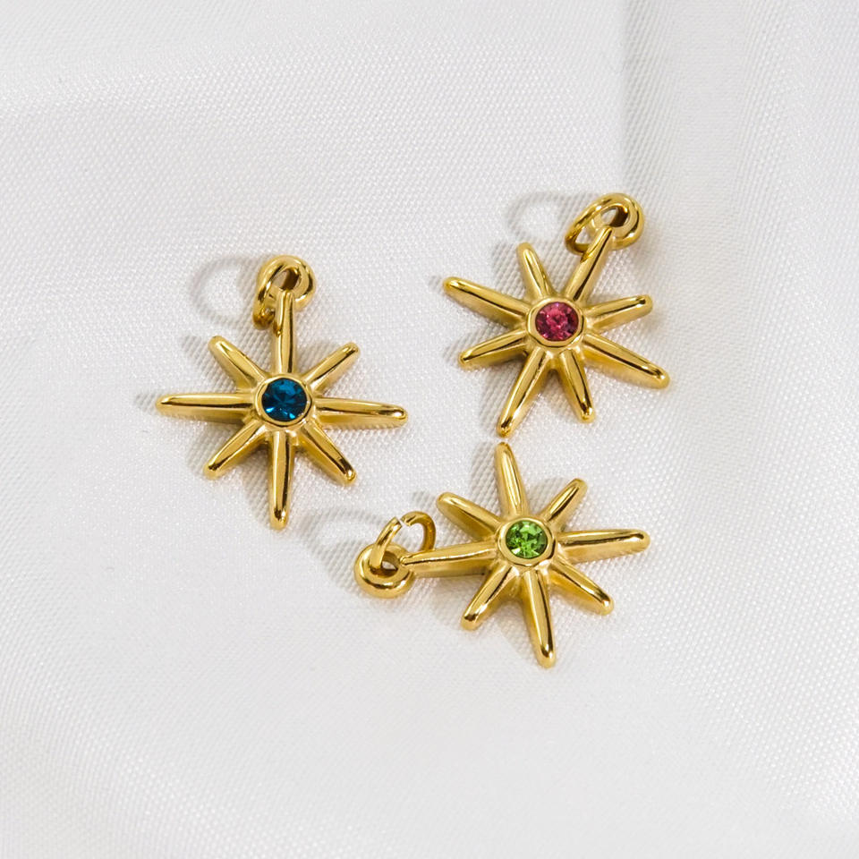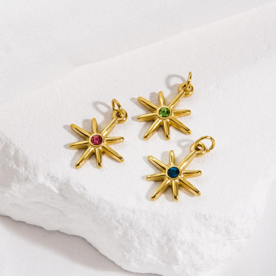 Ciondolo a Stella Esagonale in Acciaio Inossidabile con Zirconi e Cristalli, Charm in Pietra Naturale per Creazione di Gioielli