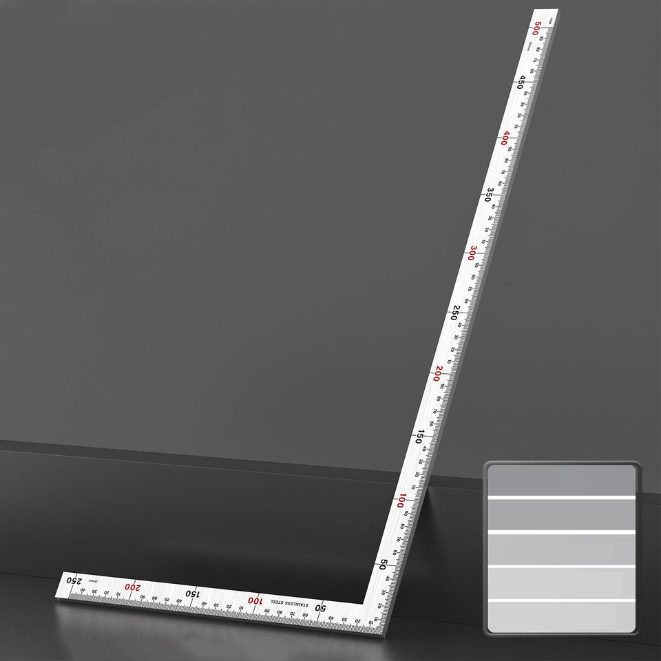Righello ad Angolo Retto in Acciaio Inox di Alta Precisione, Graduato su Entrambi i Lati, per Edilizia