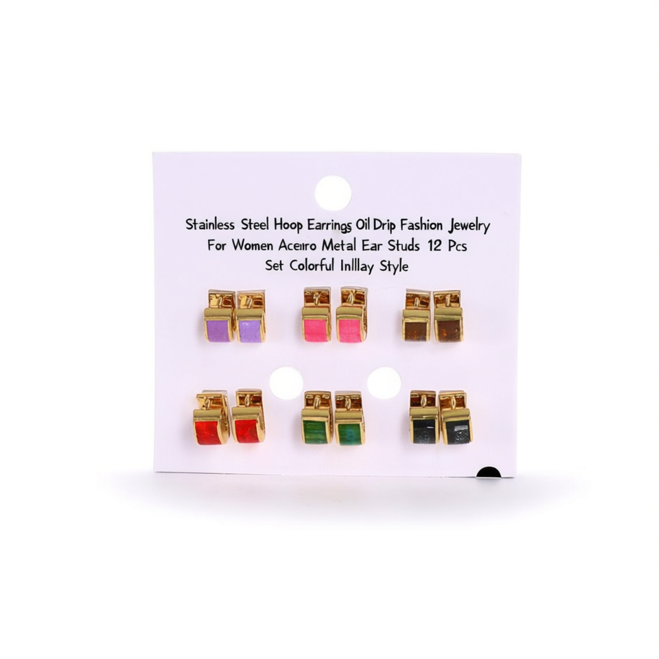 Orecchini a Cerchio in Acciaio Inossidabile con Design a Goccia d'Olio, Gioielli alla Moda per Donne, Set di 12 Pezzi in Metallo Colorato con Intarsi
