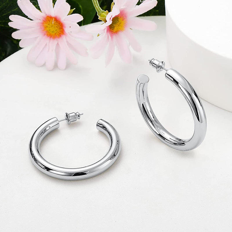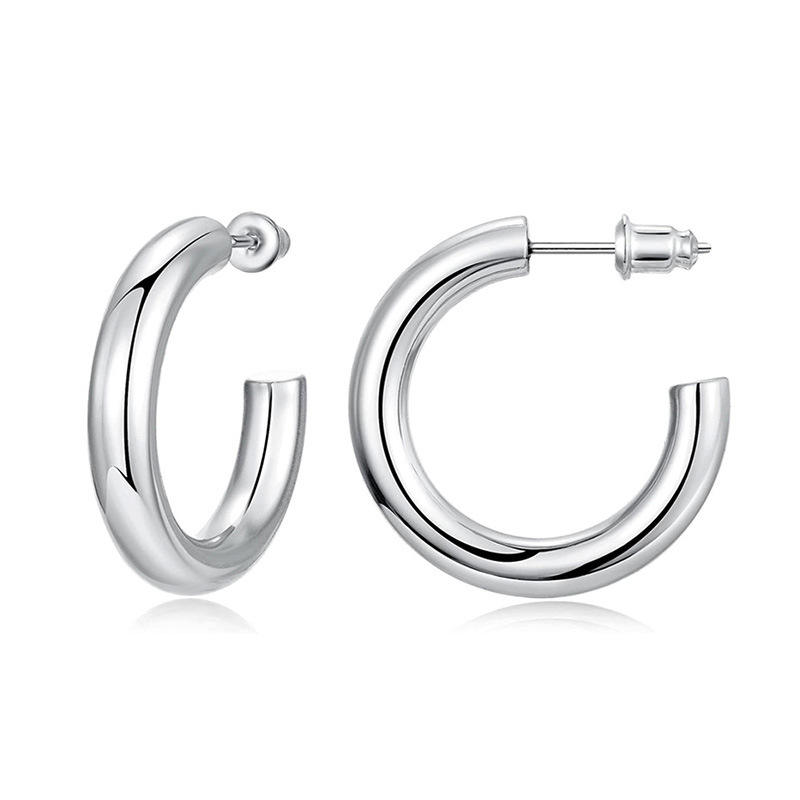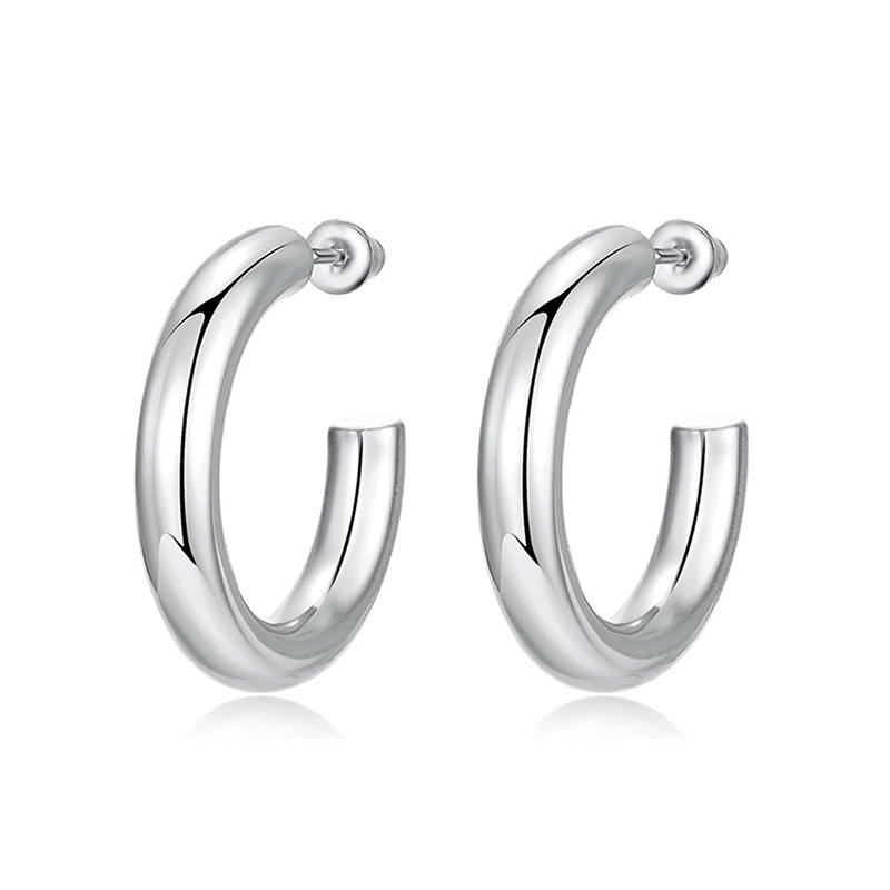 Stainless Steel Hoop Earrings White Gold Plated Rhodium Classic Unisex Fashion Jewelry 20mm Diameter