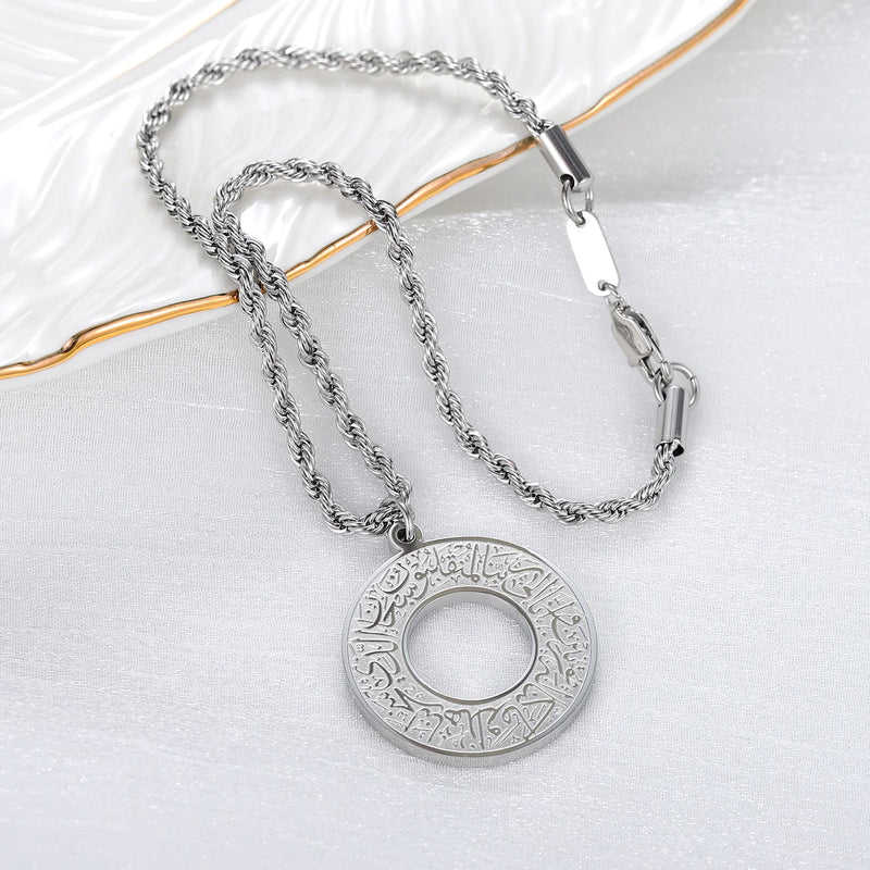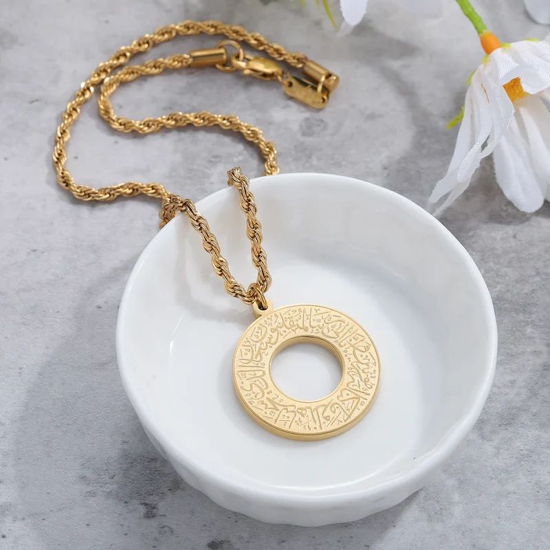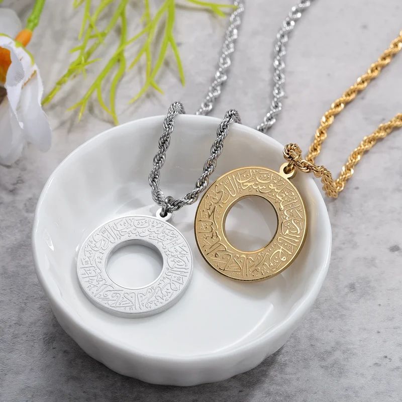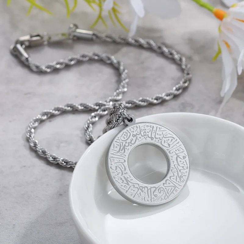 Gioielli in acciaio inossidabile collana calligrafia araba che (Allah) è con me gioiello islamico cerchio musulmano collana pendente