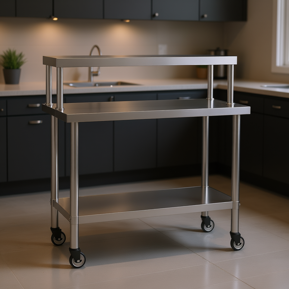 Stainless Steel Kitchen Work Table 43.3x21.7x47.2 With Overshelf 3 Shelves Carts For Kitchen Use