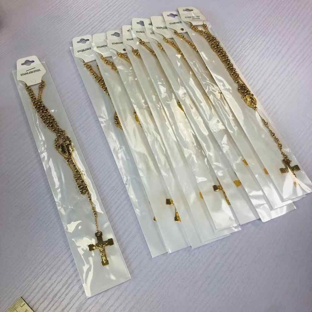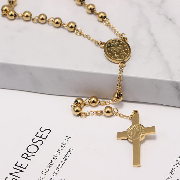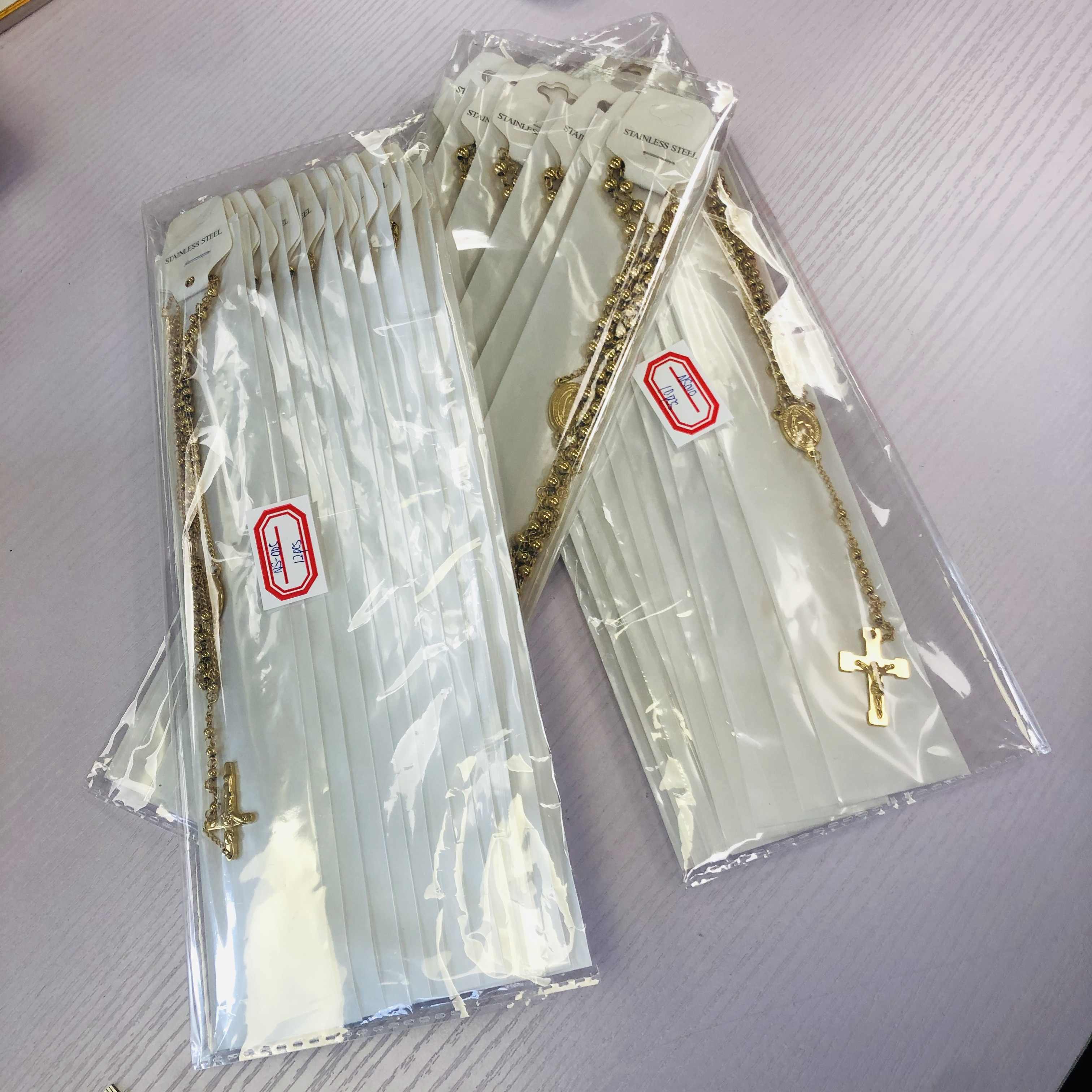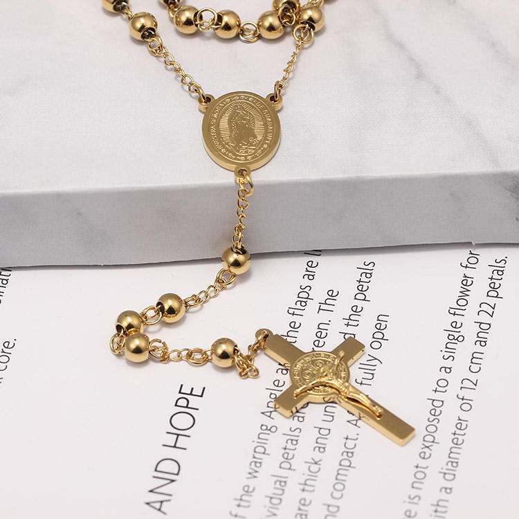Collana Rosario Religiosa Maria in Acciaio Inossidabile Laminato Oro