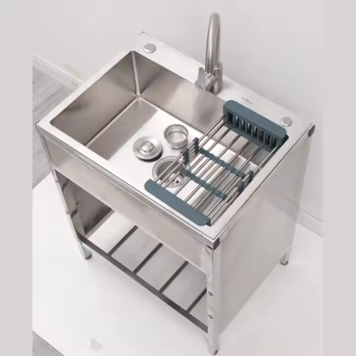 Lavello cucina con rubinetto circolare acqua calda e fredda tubo di ingresso vasca lavanderia in acciaio inossidabile con mensola