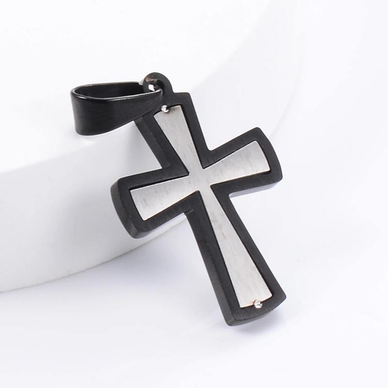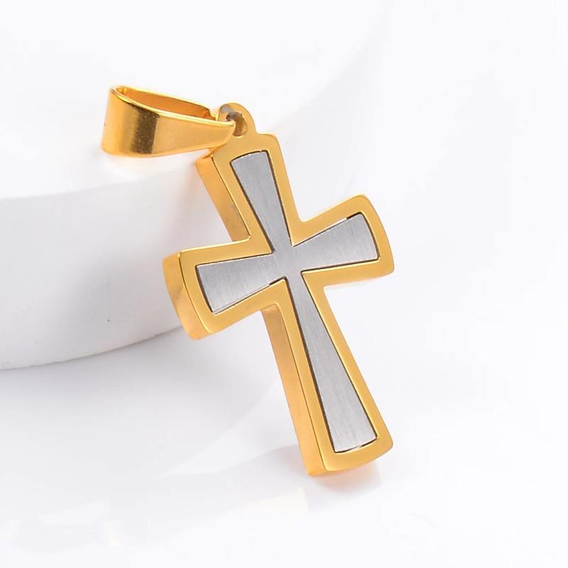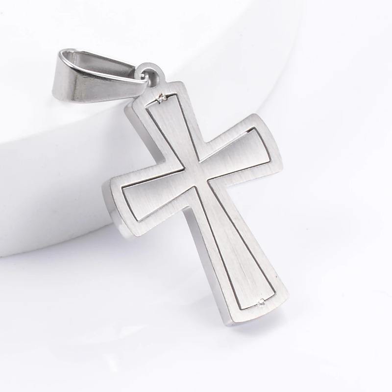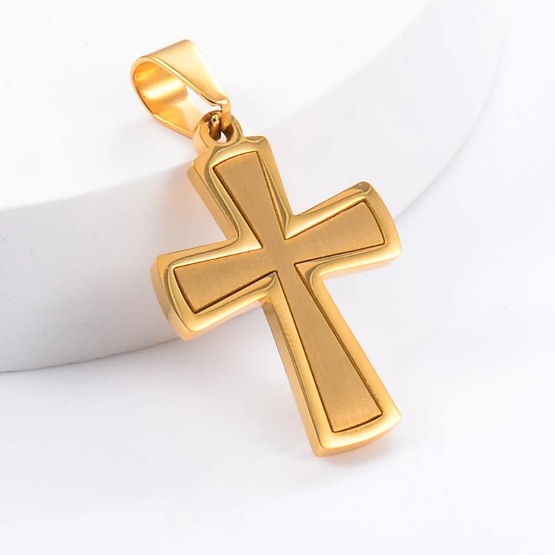 Ciondolo a Croce con Foglia in Acciaio Inossidabile per Uomo e Donna, Colore Argento e Oro, Gioielli Religiosi da Regalo