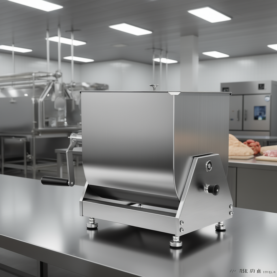 Miscelatore Manuale per Carne in Acciaio Inox 15L con Vasca Inclinabile, Attrezzatura per Lavorazione Carni con Coperchio, Maniglia e Riduttore