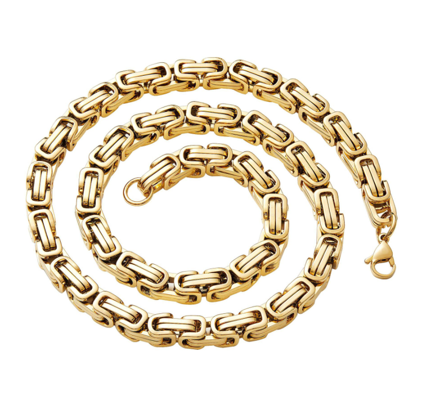 Stainless Steel Men' s Chain Byzantine Necklace Link Chain 18K Gold Plated Necklace
