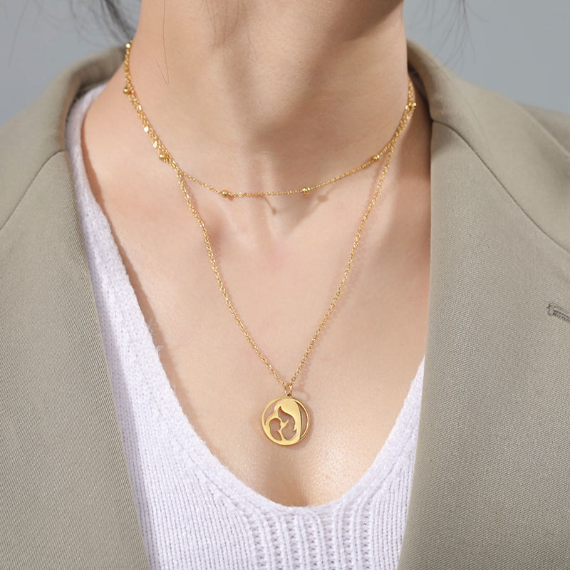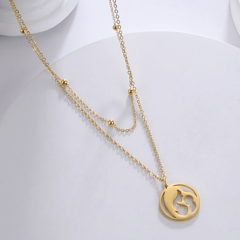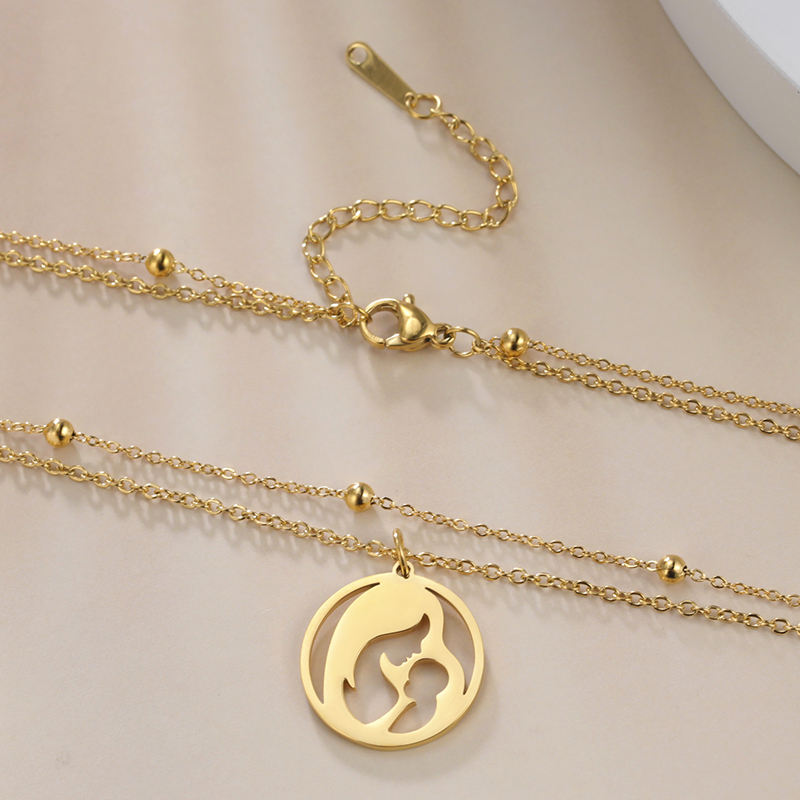Collana in acciaio inossidabile placcato in oro per mamma e bambino collana da donna a doppio strato per mamma regalo per la festa della mamma della famiglia