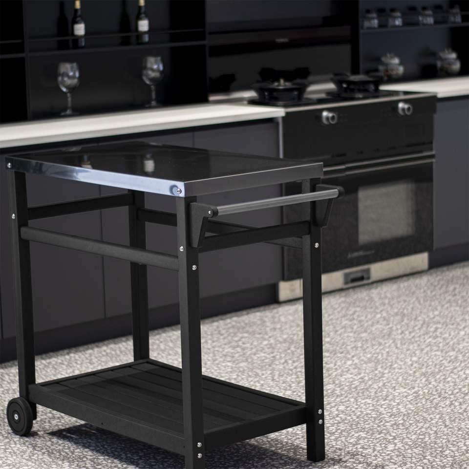 Supporto mobile per forno pizza in acciaio inossidabile, tavolo da esterno per preparazione e servizio, per carrello bar da patio, carrello barbecue da giardino