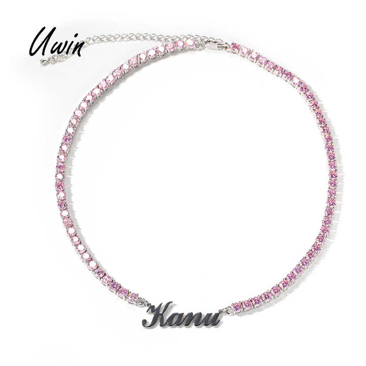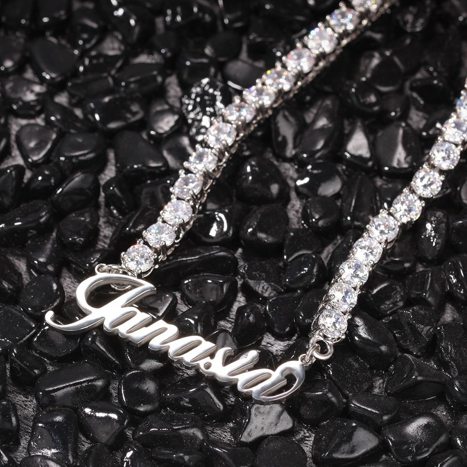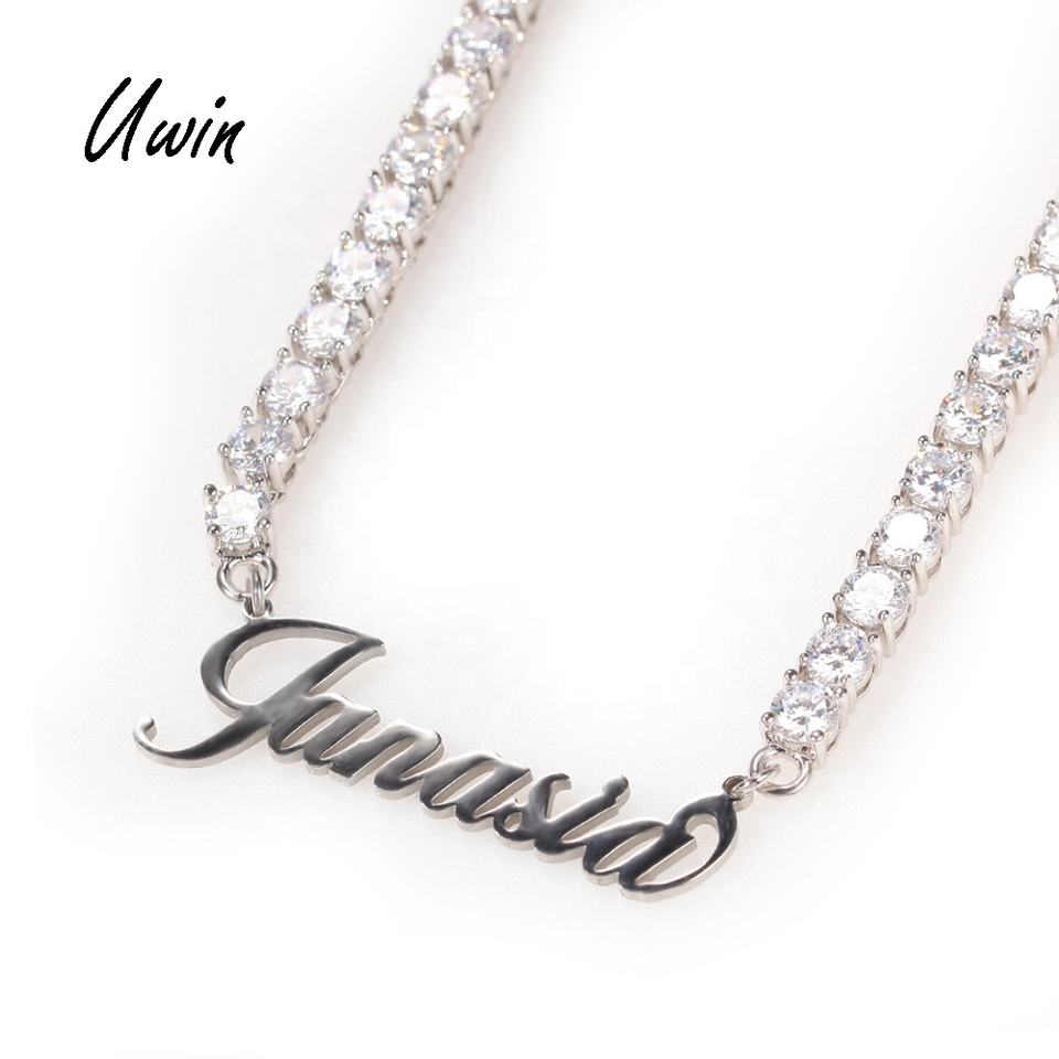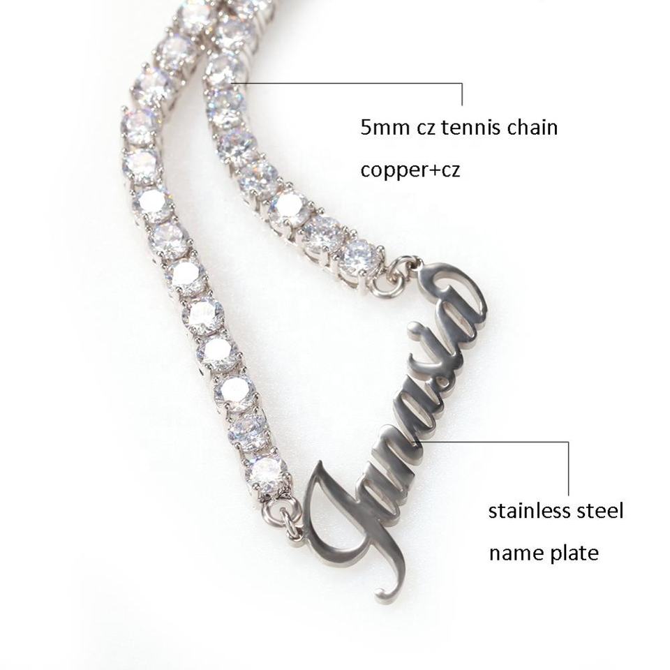 Ciondolo con Targhetta Personalizzata in Acciaio Inossidabile con Collana Tennis CZ Iced Out, Placcato Oro, Argento, Oro Rosa, Gioielli da Rapper