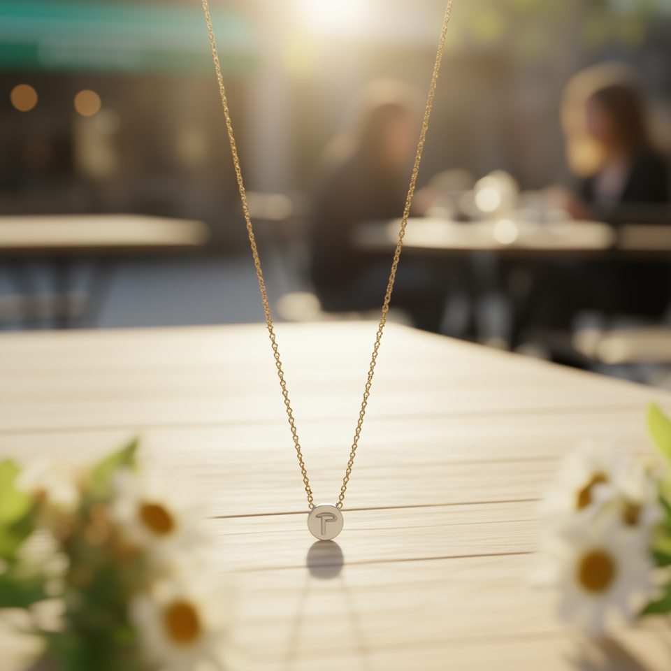 Collana in Acciaio Inossidabile con Ciondolo a P Monofacciale da 1 cm, Catena a Collare, Gioielli alla Moda