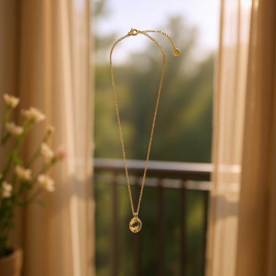 Collana con ciondolo Angelina in acciaio inossidabile placcato oro, catena a serpente minimalista 45488 per donna