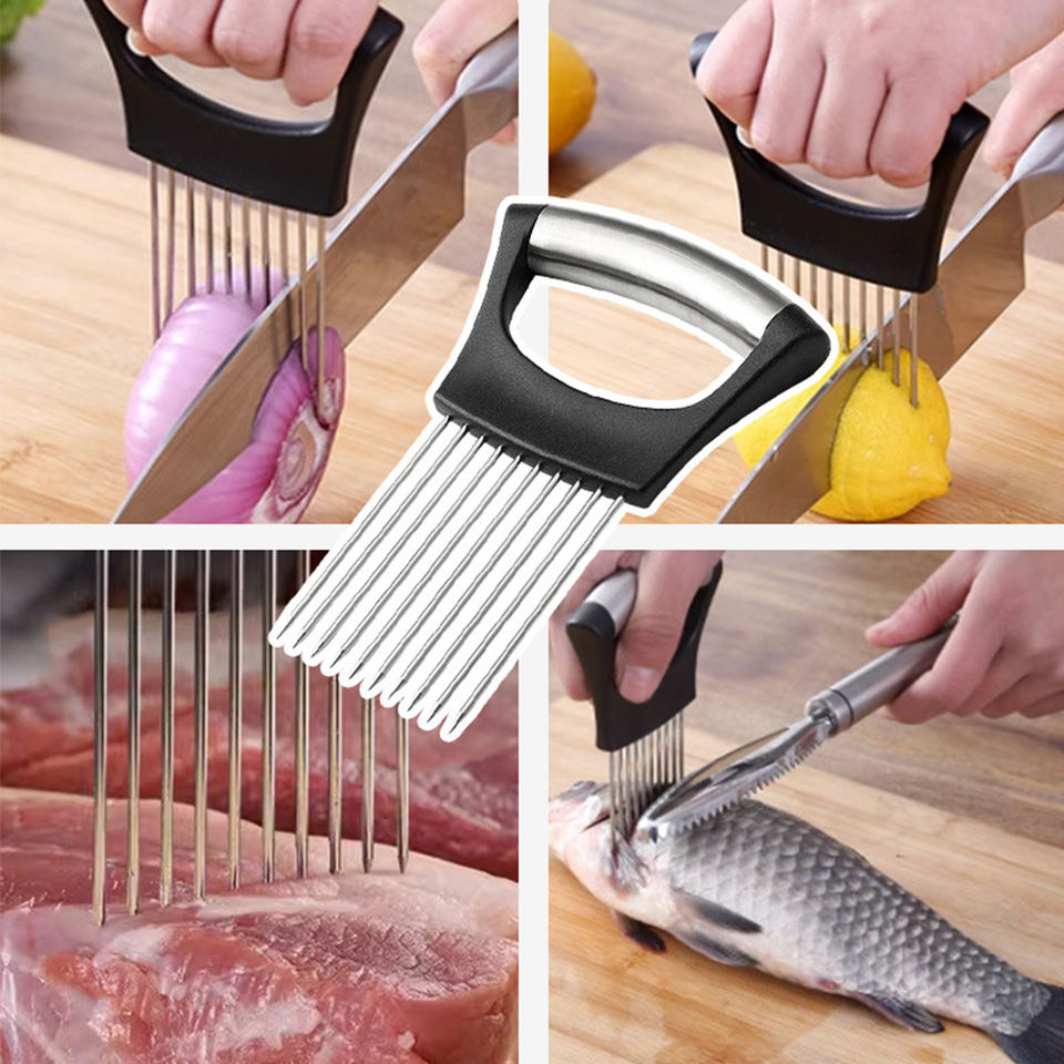 Supporto cipolla in acciaio inossidabile per affettare tagliapalle cipolle affettatrice pomodoro patate verdure strumento di taglio carne