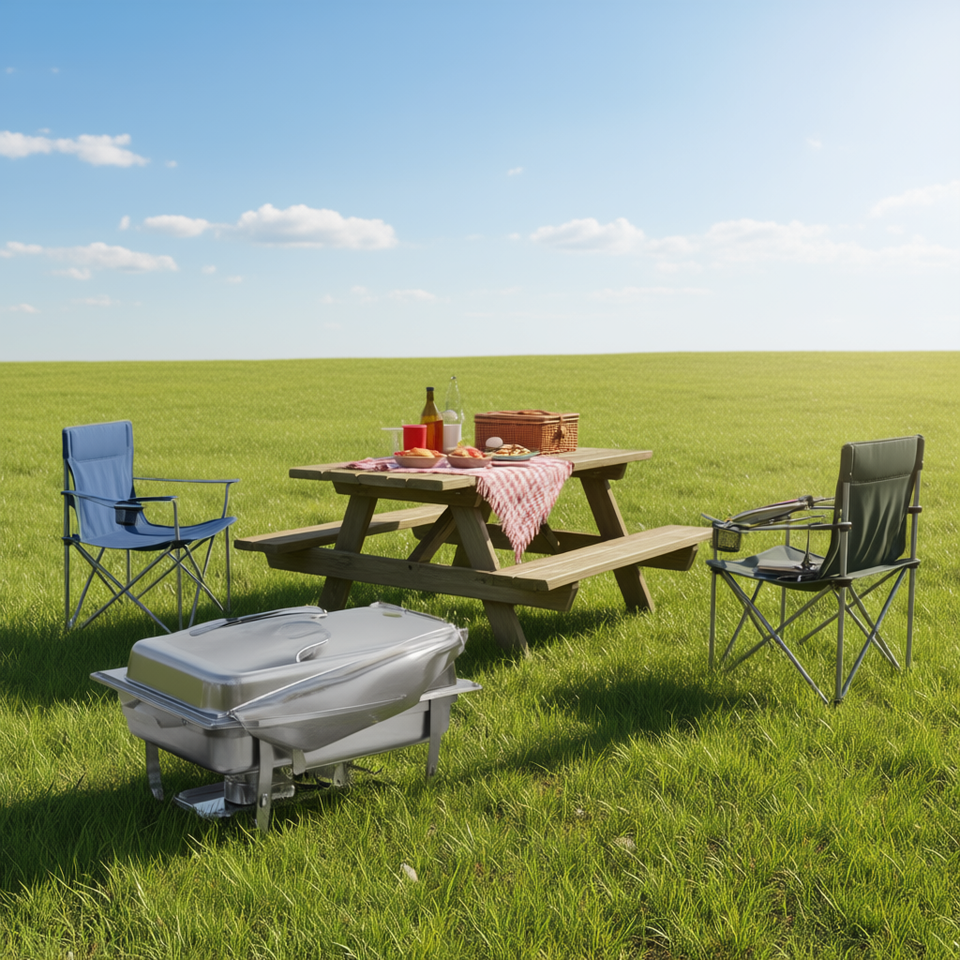 Set da buffet da esterno in acciaio inossidabile, 2 pezzi, teglia per arrostire con coperchio, per picnic, campeggio, utensili da cucina