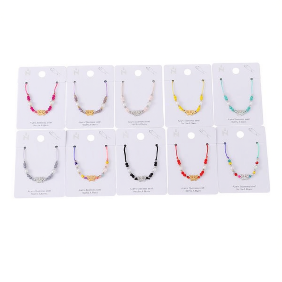Bracciale in Acciaio Inossidabile con Perle e Cristalli PULSERA Set di Gioielli Artigianali alla Moda con Perline 12 Pezzi Ref45312