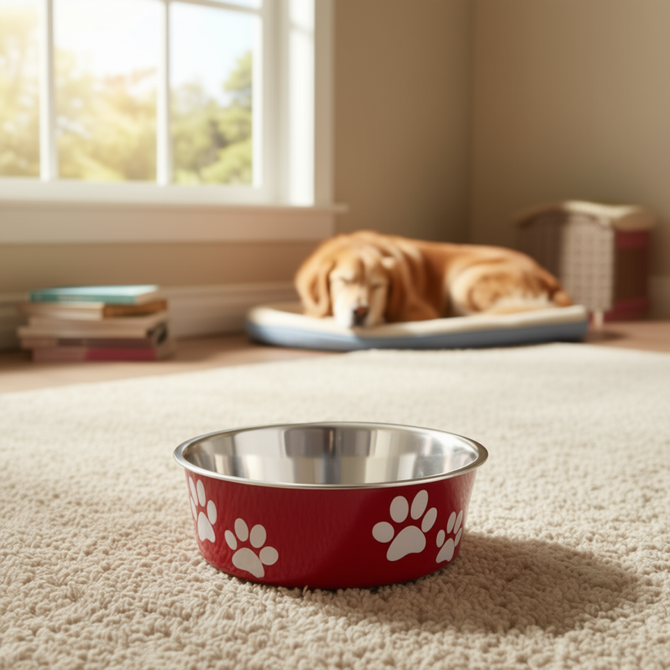 Ciotola per animali domestici in acciaio inossidabile da 0,45 L rossa con impronte di zampe per cani e gatti