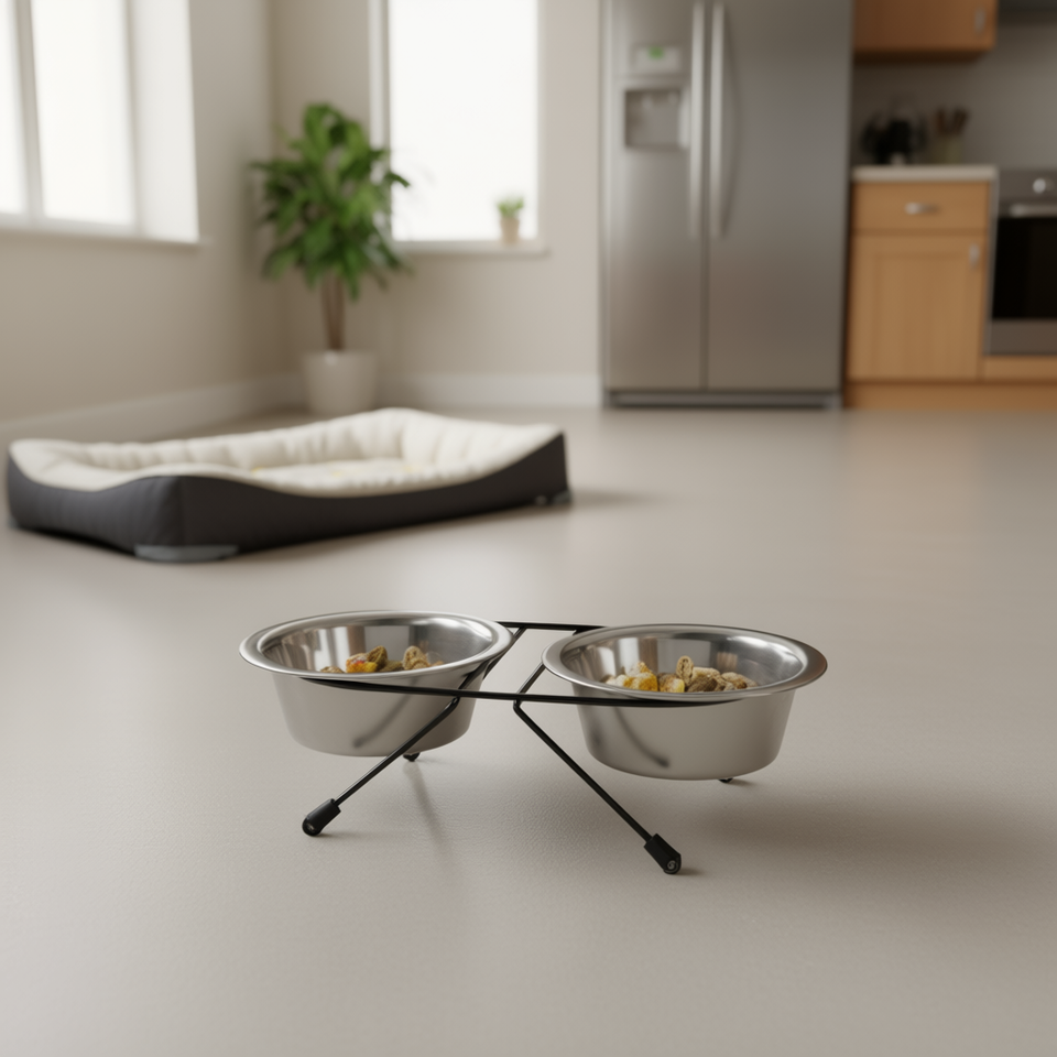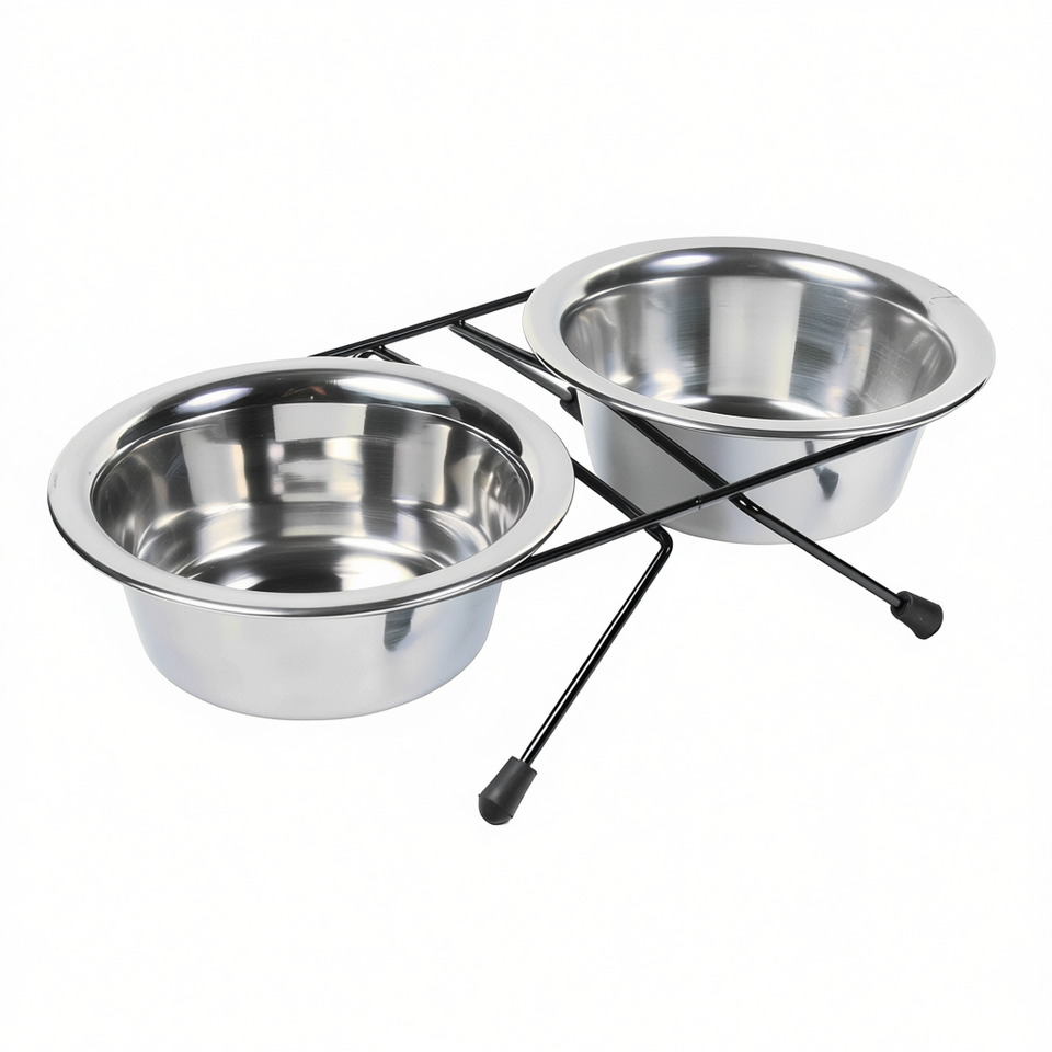 Set di Ciotole e Mangiatoie per Animali in Acciaio Inox, 2 X 0,45 L, Design Rialzato da 13 cm per Cani