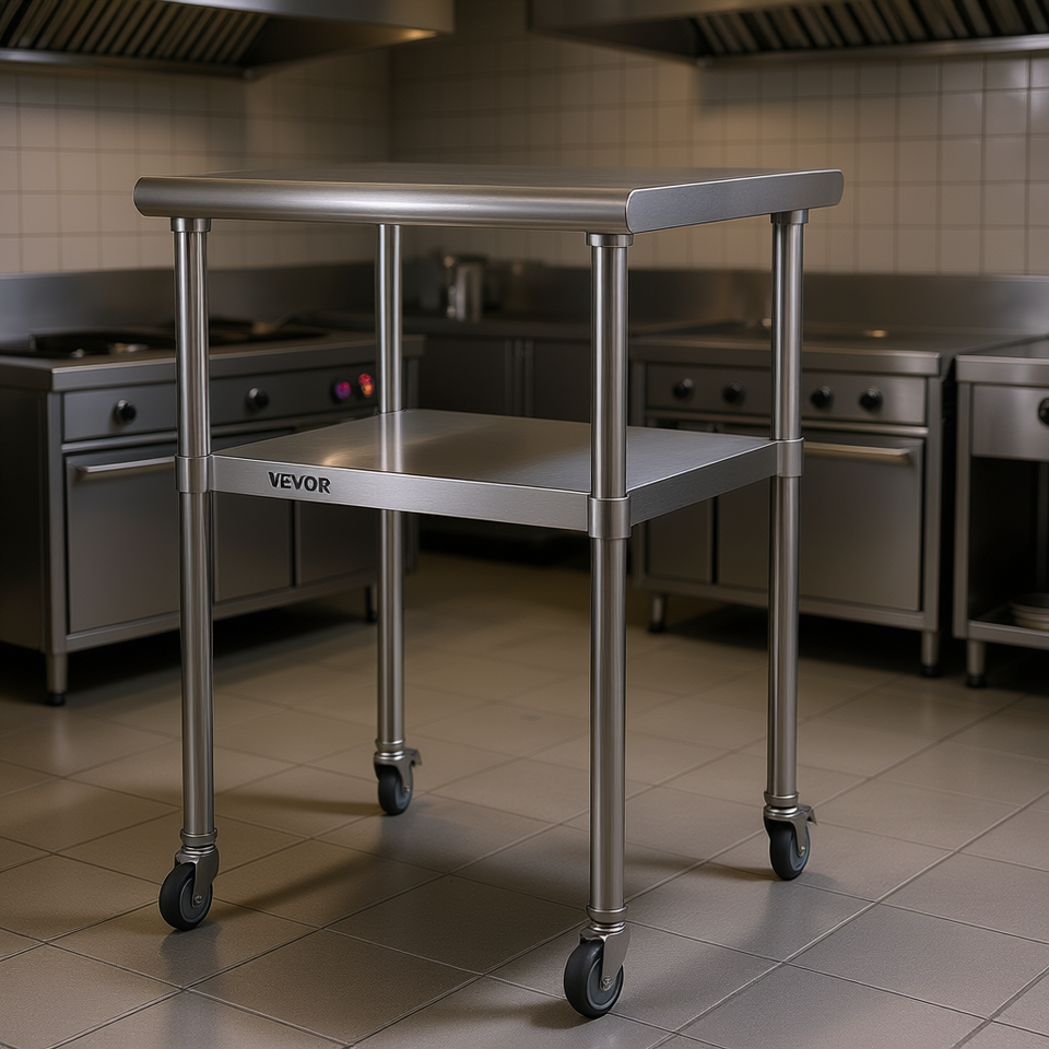 Tavolo da Preparazione in Acciaio Inox 24 X 24 X 36 Pollici con Ripiano Inferiore Regolabile, Postazione di Lavoro per Cucina Commerciale