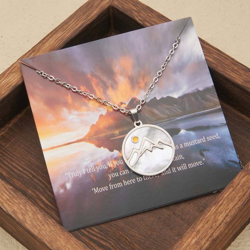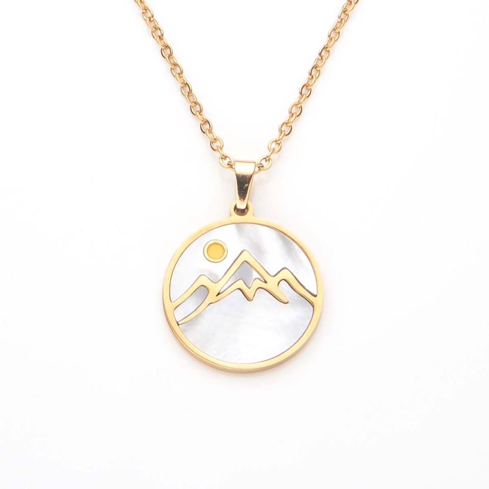 Collana con Ciondolo Rotondo in Acciaio Inossidabile Placcato Oro Vero, Motivo Montagne e Seme di Senape, Regalo per Donne, Resistente all'Ossidazione