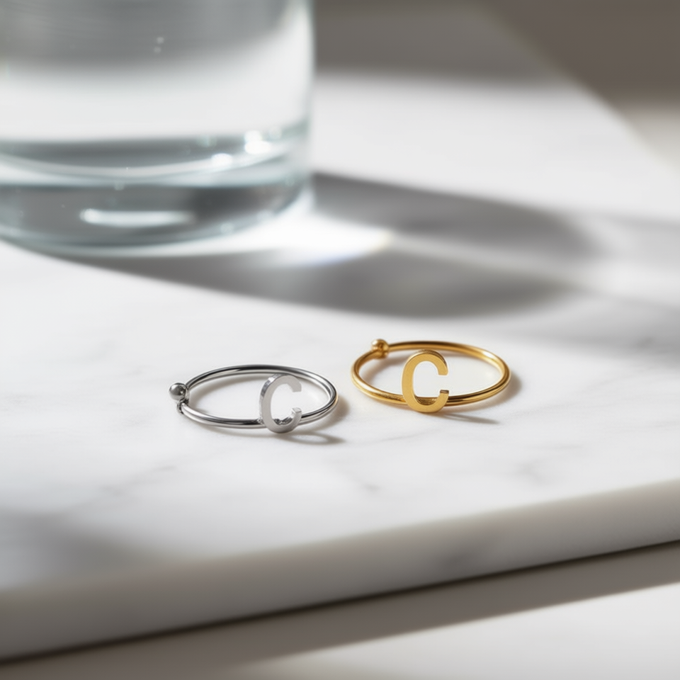 Anello in acciaio inossidabile con lettera C 6 mm, gioiello alla moda per donna e uomo