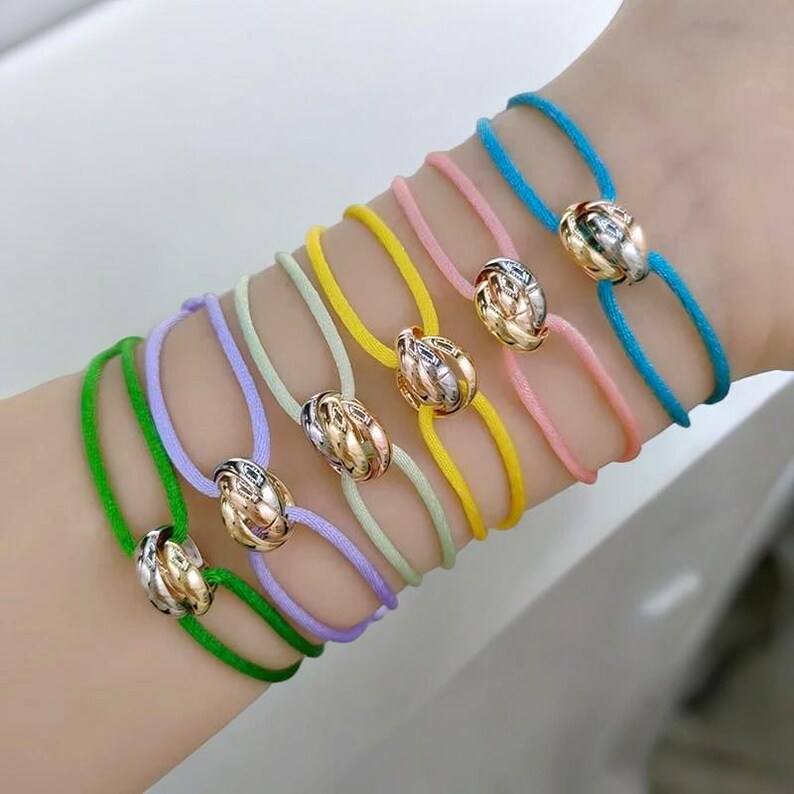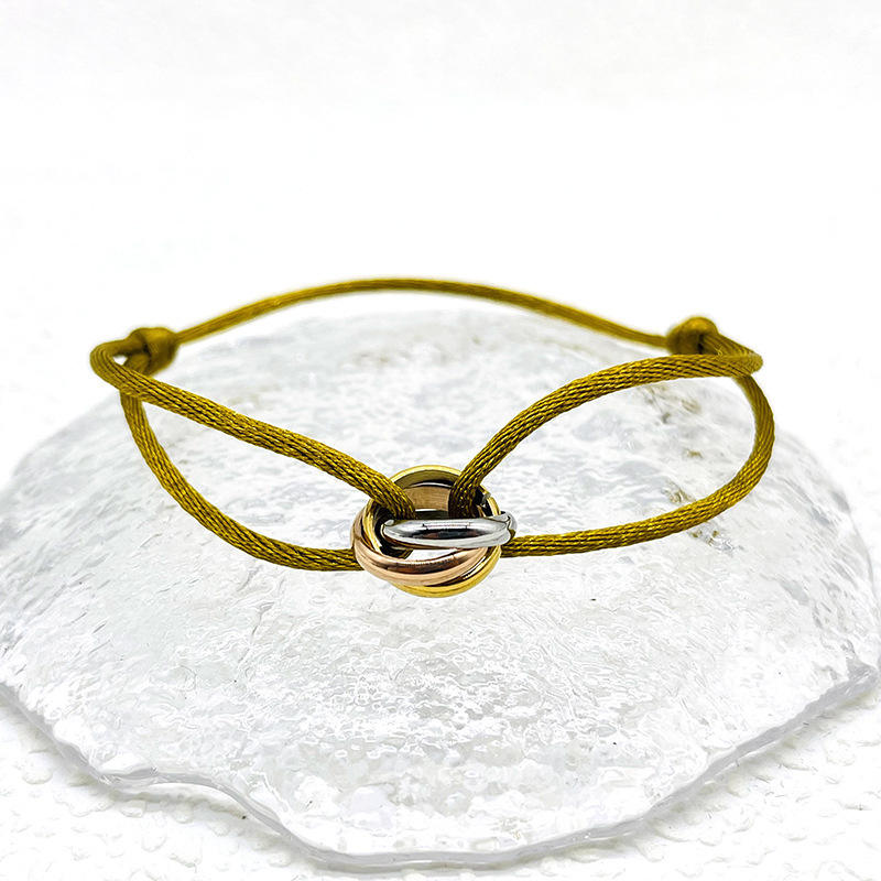 Stainless Steel Satin Bracelet Fashion Jewelry Rope Wire Linked 3 Rings Adjustable Cord Bracelet for Women Men