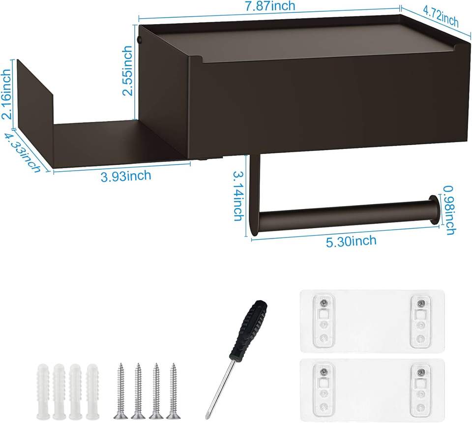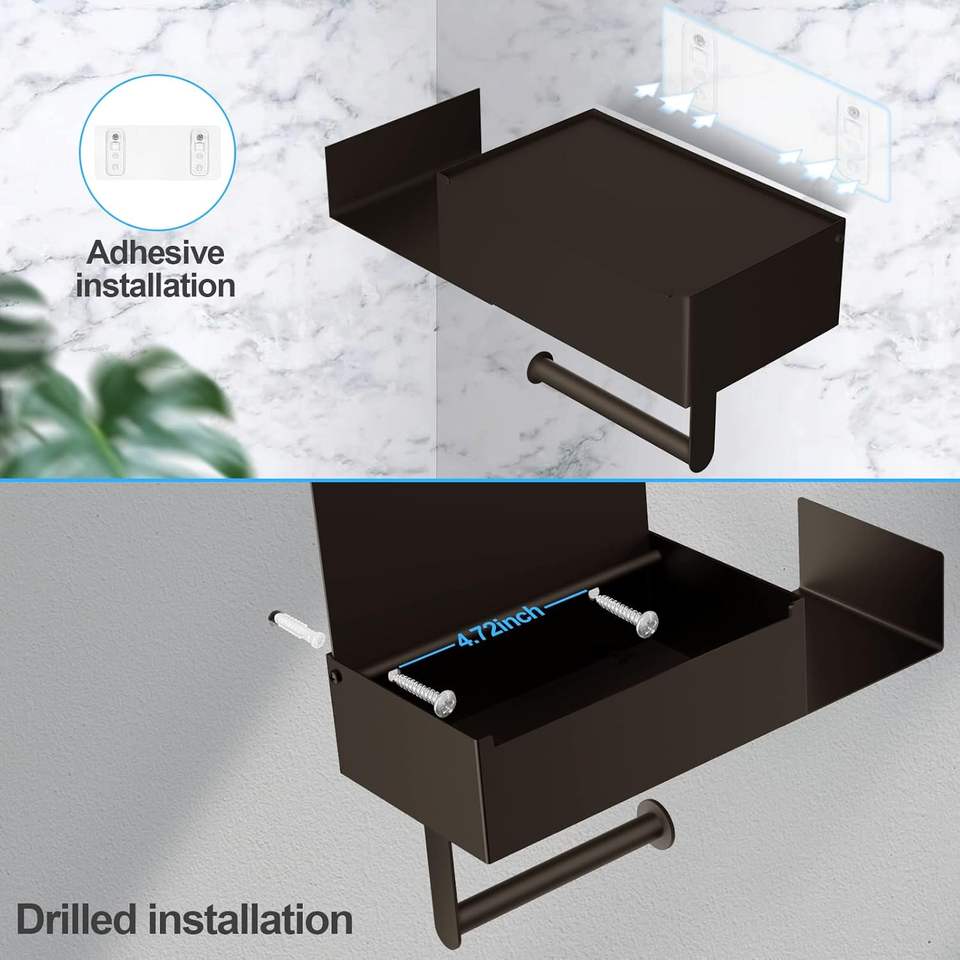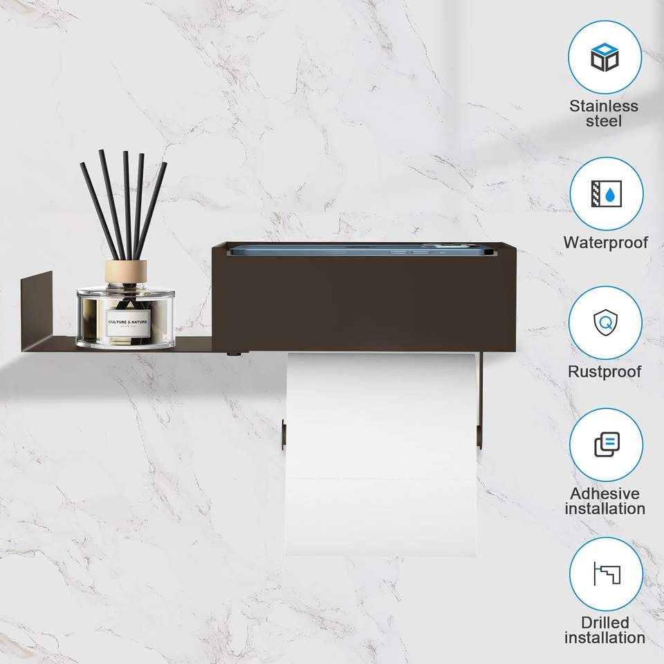 Portarotolo di Carta Igienica Autoadesivo in Acciaio Inox con Dispenser per Salviette Biodegradabili e Vano Portaoggetti