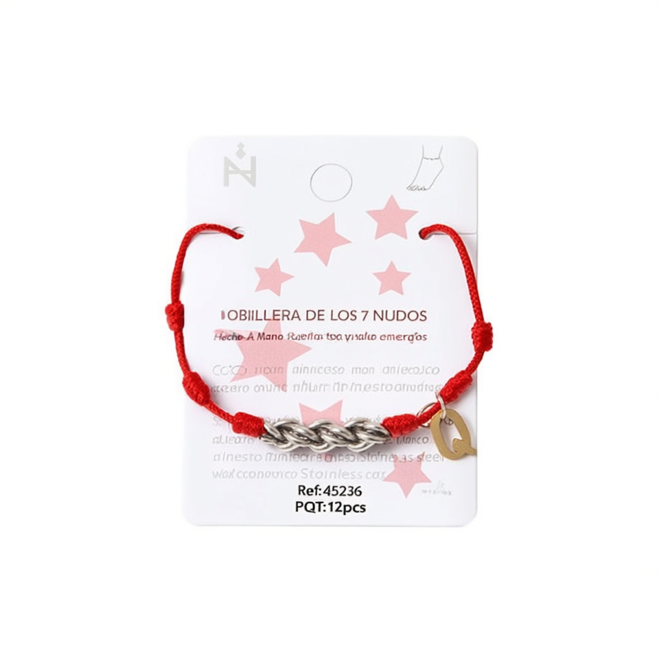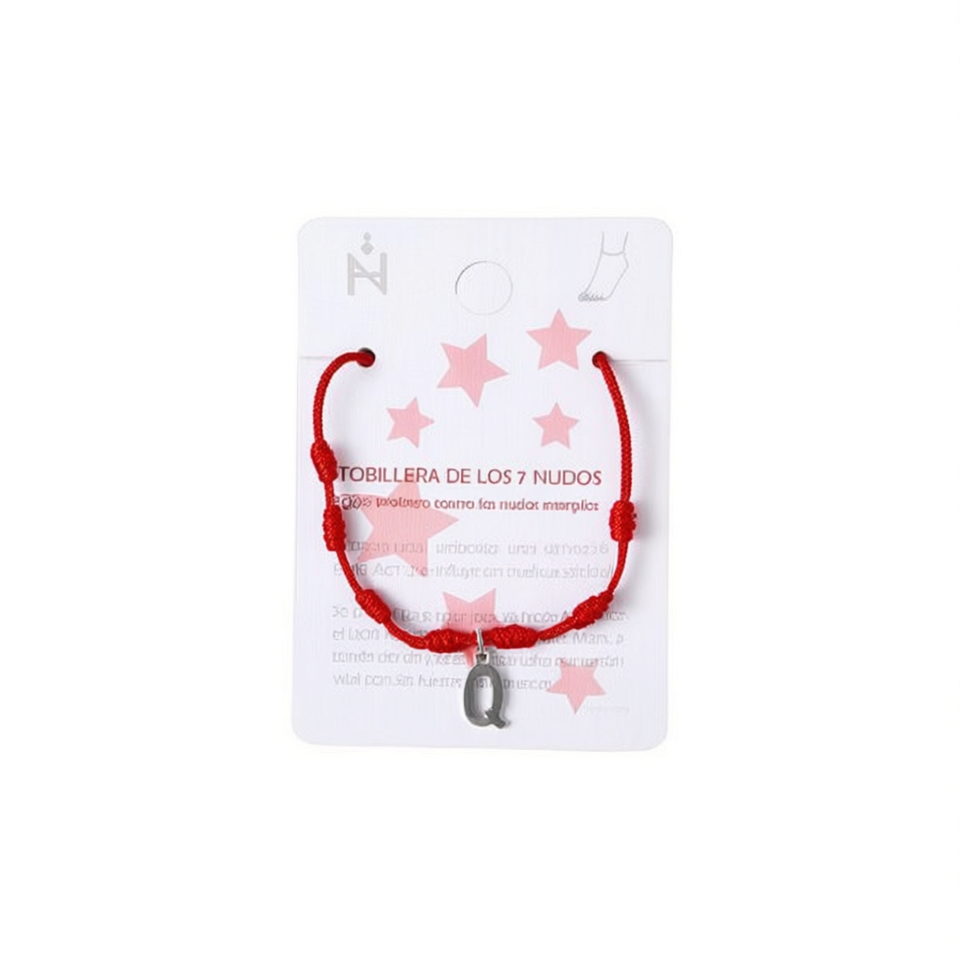 Cavigliera Angelina a sette nodi con cordino rosso e ciondolo a forma di lettera Q per donna, gioiello alla moda, catena protettiva per i piedi