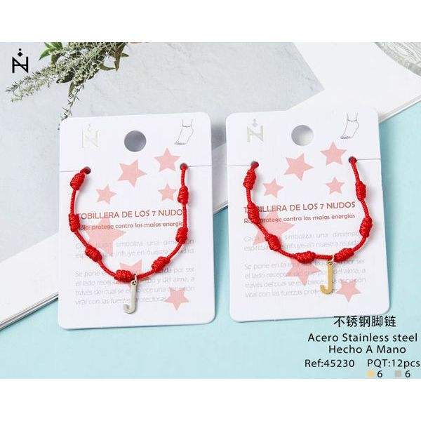 Cavigliera Angelina a sette nodi con cordino rosso e ciondolo a forma di lettera J per donna, gioiello alla moda, idea regalo.