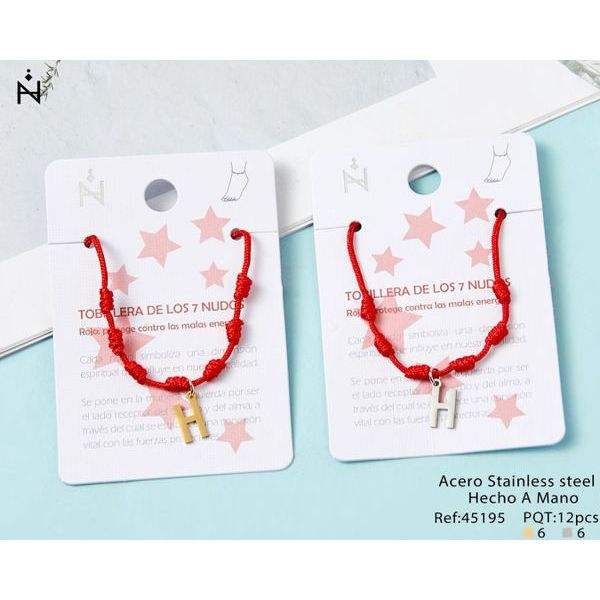 Cavigliera in Acciaio Inossidabile con Nodo a Sette Stelle e Lettera H, Cordino Rosso Fatto a Mano, Gioielli alla Moda per Donne e Ragazze