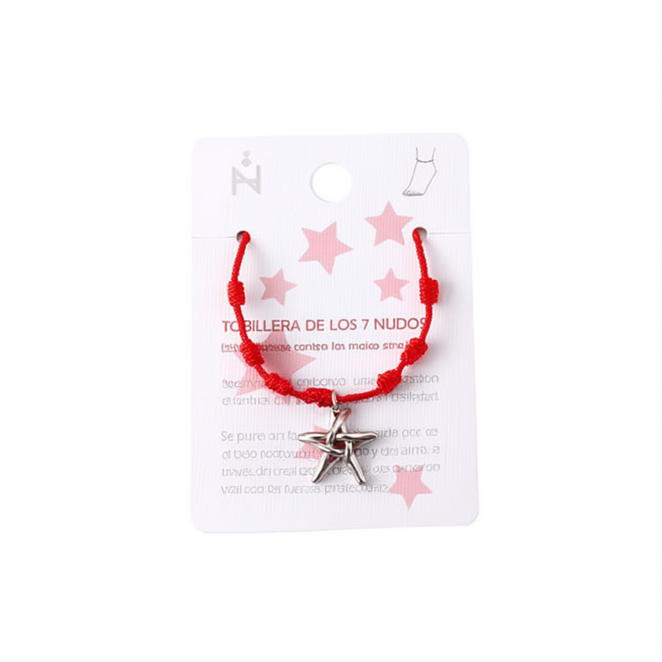 Cavigliera con nodo a sette stelle in acciaio inossidabile, rosso, fatta a mano, amuleto di protezione per donna, gioielli alla moda.