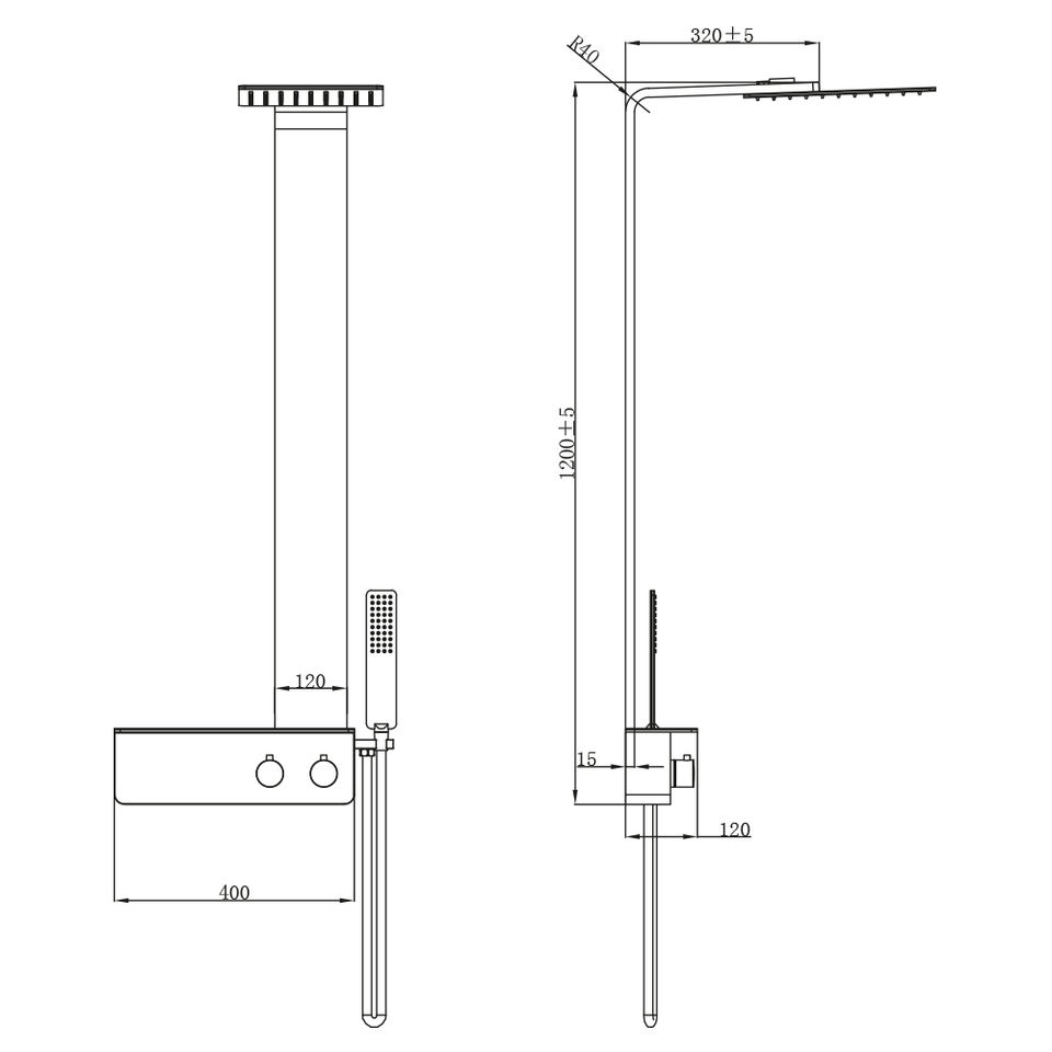 Stainless Steel Shower Column with 2 Functions Brushed Top Model L40XP42XH120 015 Accessory for Shower Room
