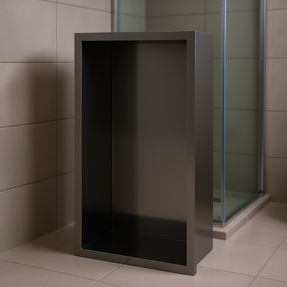 Nicchia Doccia in Acciaio Inox 13 X 7 Pollici Nero Canna di Fucile Montaggio a Parete Design Minimalista Rettangolare