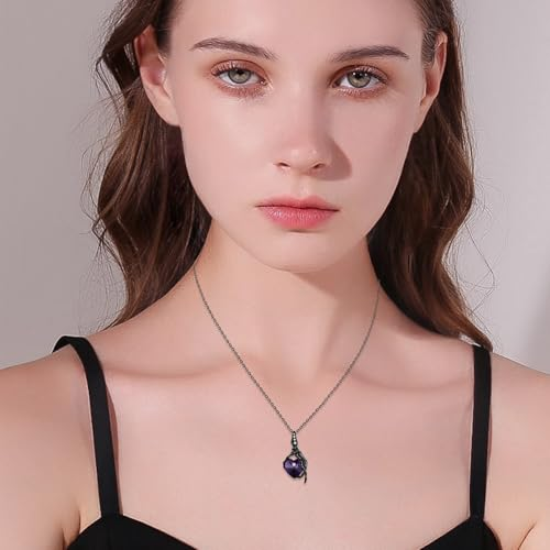 Stainless Steel Silver Plated Skull Necklace Heart-Shaped Lab Created Zircon Gothic Punk Skeleton Hand Pendant Women's Christmas