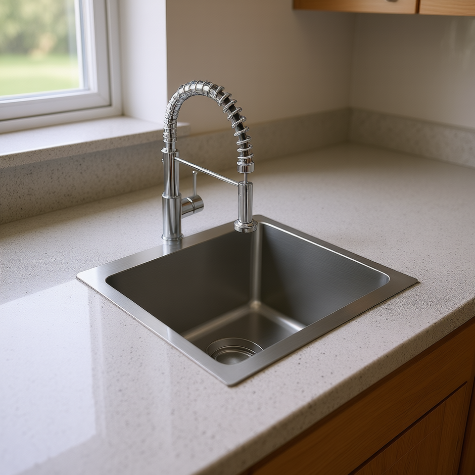 Lavello da Cucina Monoblocco in Acciaio Inox 15x15 Pollici, Quadrato, Superficie Spazzolata, Facile da Pulire, Design Contemporaneo