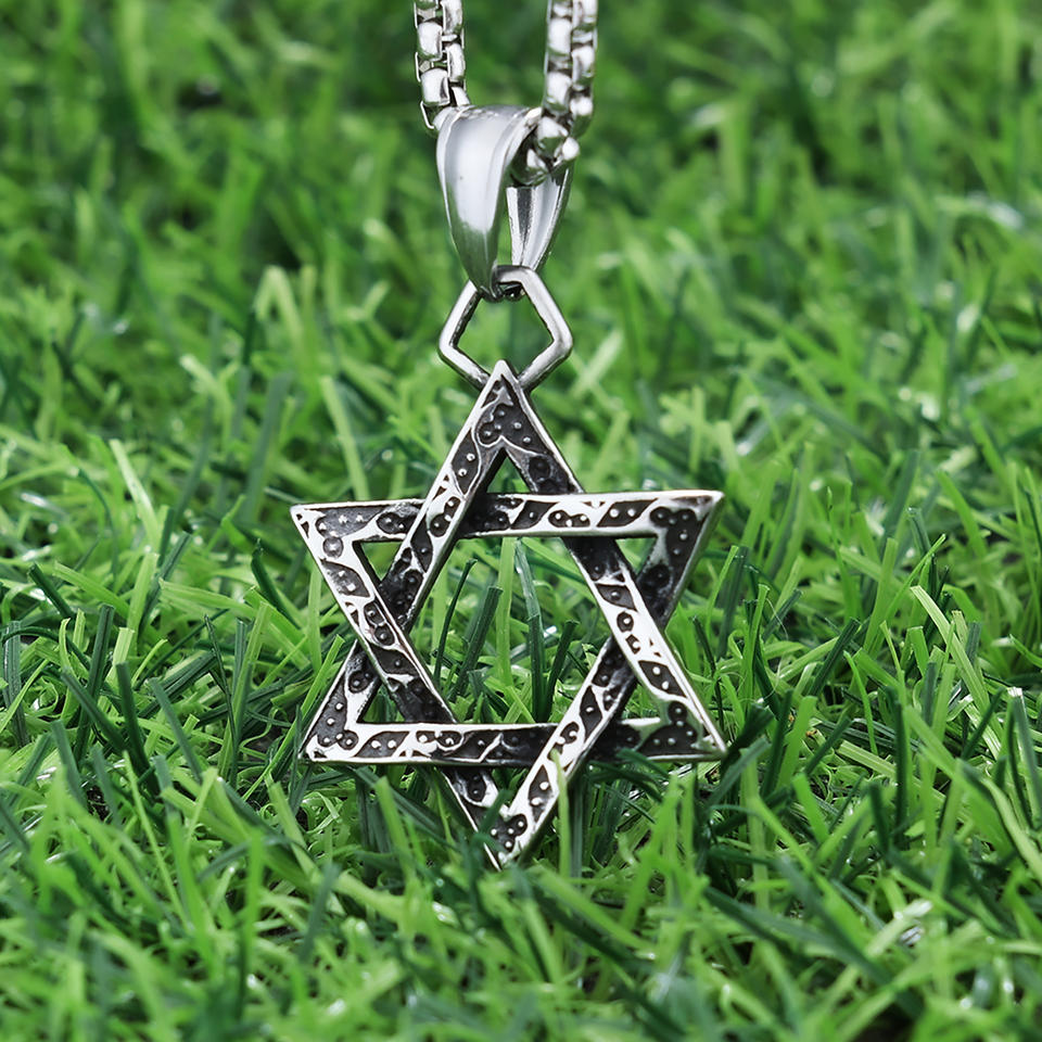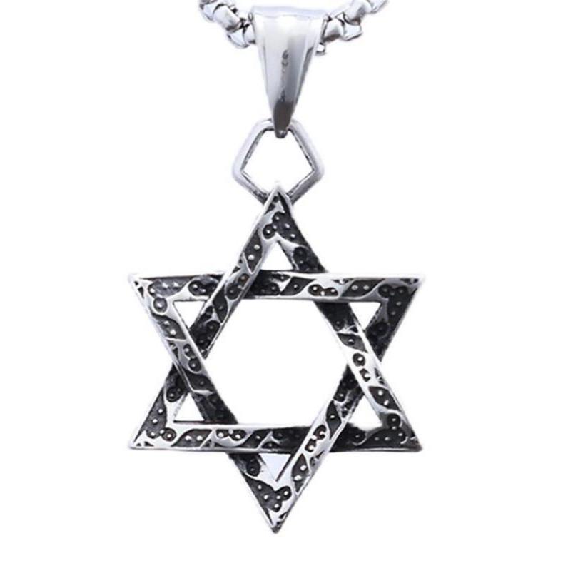 Stainless Steel Star of David Pendant Necklace Silver Tone Textured Magen David Jewish Symbol for Men Religious Jewelry