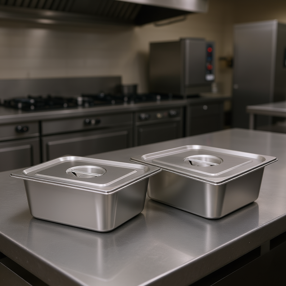 Contenitori per Alimenti in Acciaio Inox, Misura 1/2, Profondità 6 Pollici, con Coperchi Anti-Appannamento, per Catering, Ristoranti e Hotel