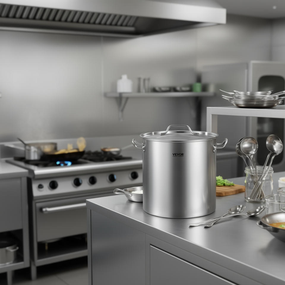 Pentola in Acciaio Inox da 42 Quarti con Coperchio, Adatta per Induzione, Grado Commerciale, per Zuppe e Brodi