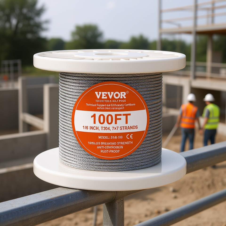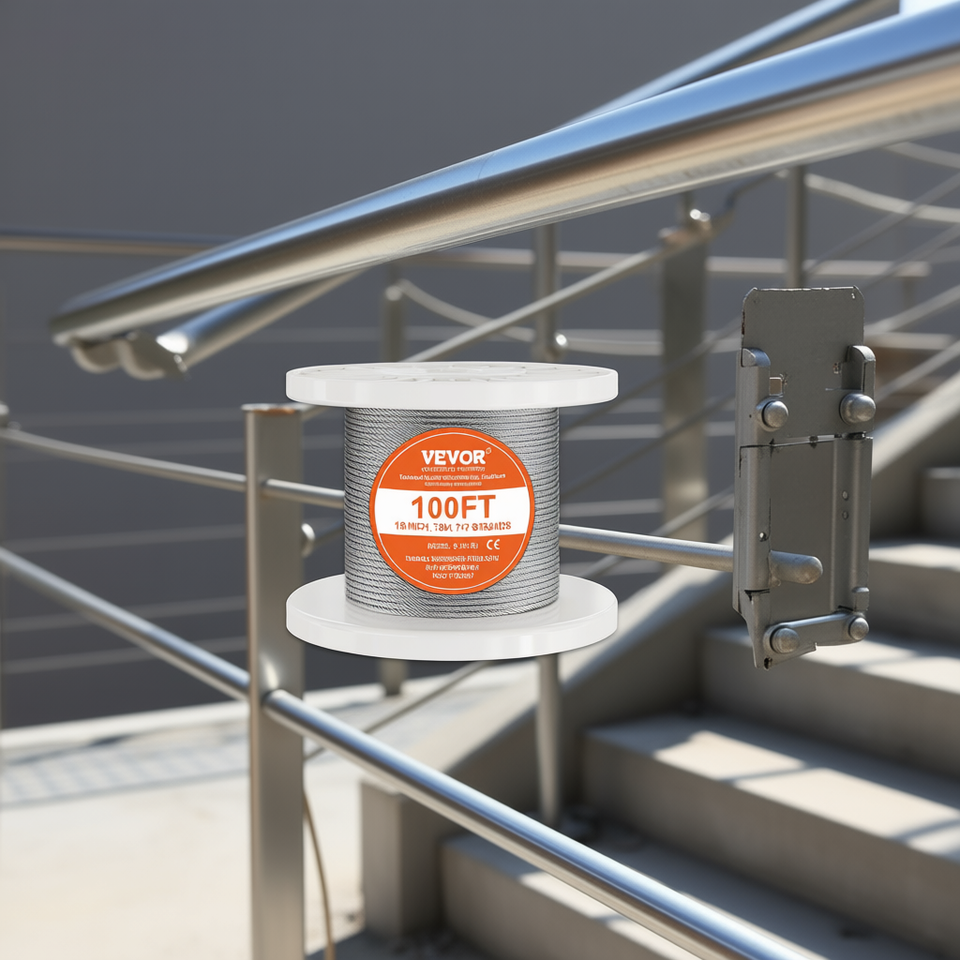 Fune in Acciaio Inossidabile 1/8 Pollici 7x7 100 Piedi per Uso Edile